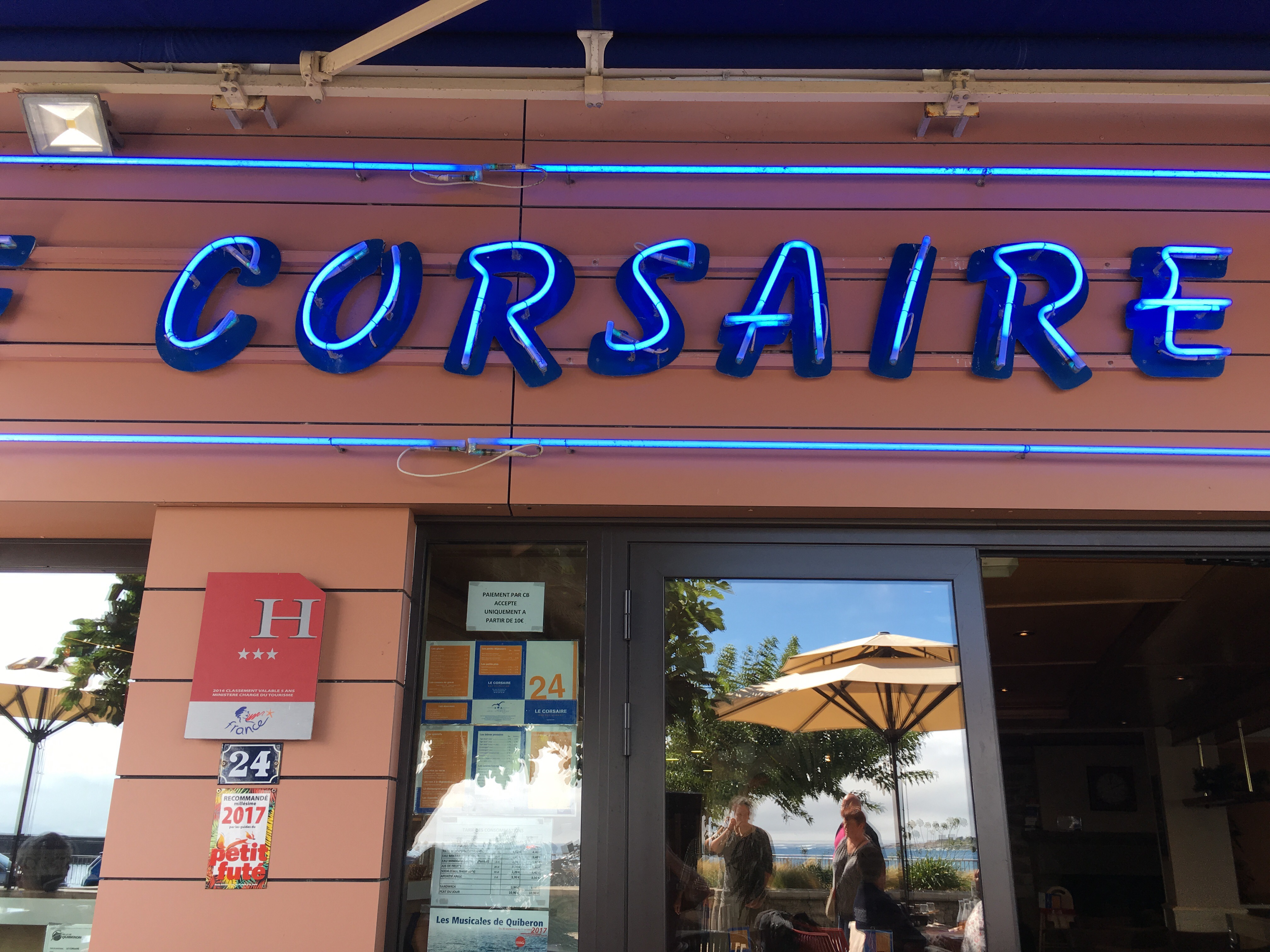 Restaurant génial personnel adorable. Nous avons vraiment très bien mangé c’était succulent et merveilleusement bien accueilli. Et Sam notre berger allemand de 9ans et demi a été également très bien accueilli. Si vous allez à Quiberon je vous recommande vivement de déjeuner ou dîner au corsaire. C’est un lieu à ne pas manquer.nous sommes retourné au corsaire cette année ( vacances scolaires ) un peu déçu. J’ai encore pris le plateau de fruits de mer et l’araignée était bien trop cuite 😵 pourtant depuis mon premier passage en 2023 nous y allons régulièrement et toujours parfait et la déçu par l’araignée trop cuite dommage. Mais nous y retournons quand même une petite erreur est toujours possible.. peut-être parce que ce sont les périodes de vacances scolaires ?????