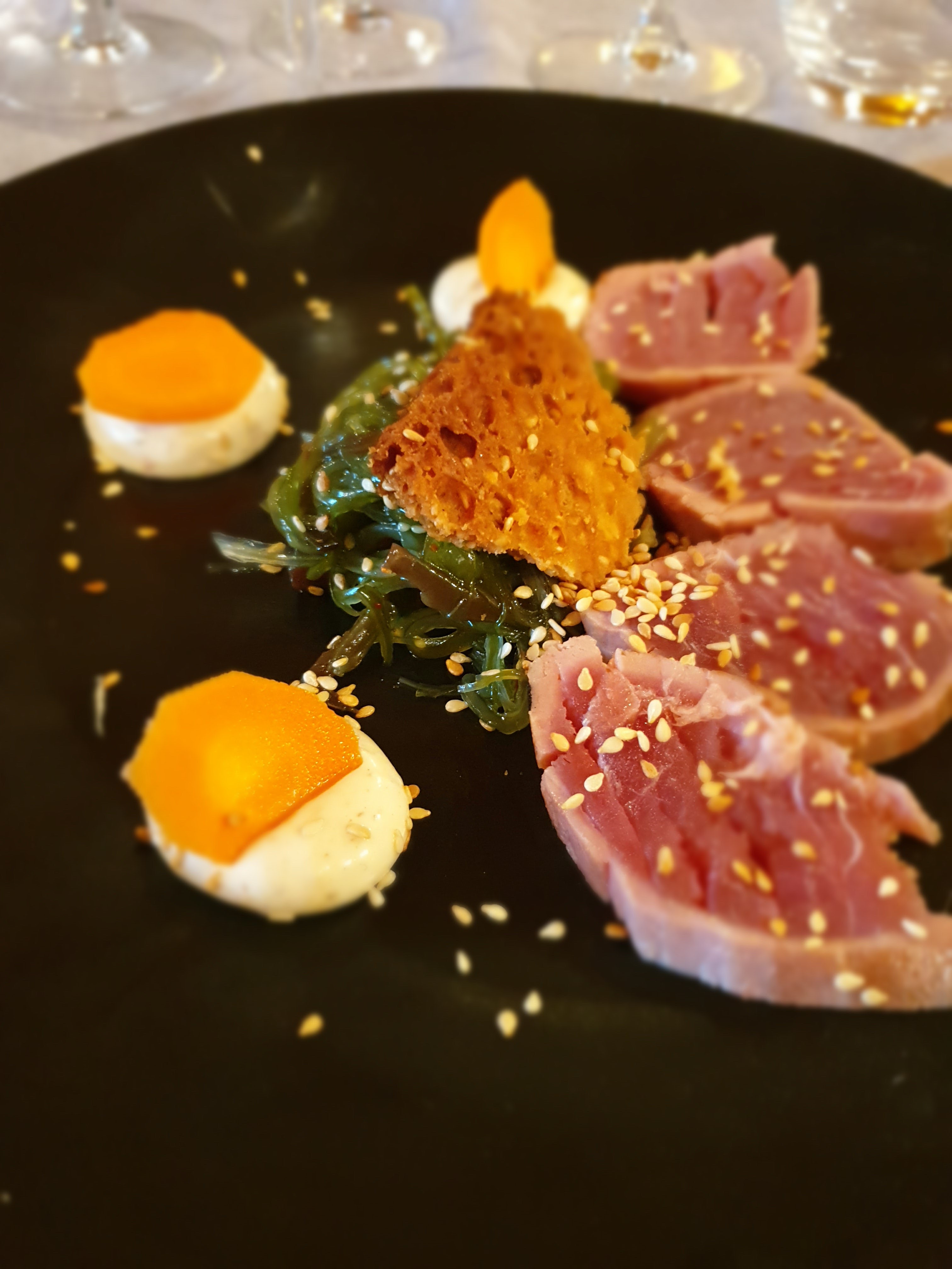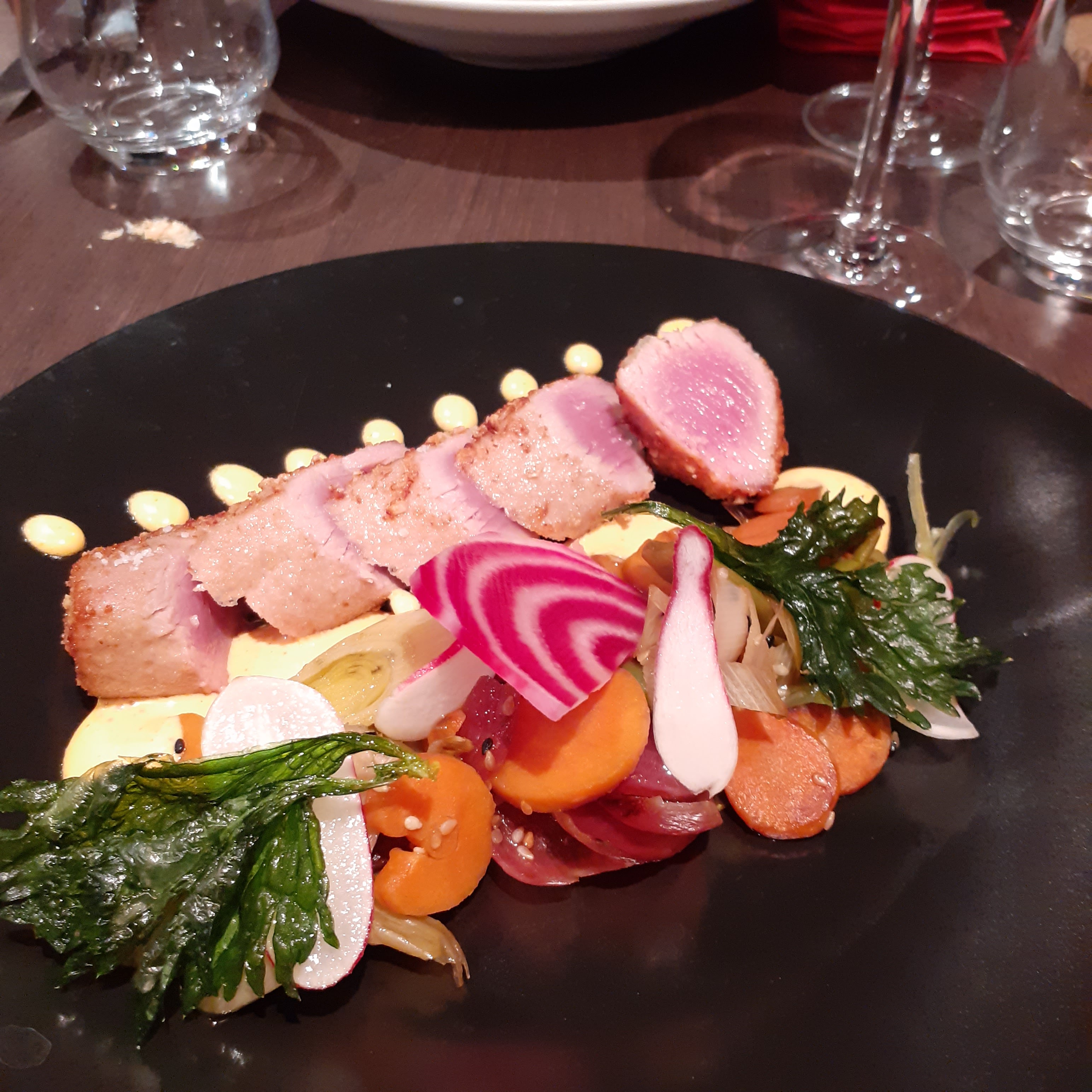 Quand le chef se prend pour un cuisinier de top chef . Trop de goût étrange des ingrédients qui n ont rien à faire dans les plats ( cacahuètes, kumquat, .... ) quel dommage , des plats simples qui sont destructurés par ces ingrédients. ( je rappelle que rien n était indiqué sur le menu et qu'il y a des personnes ALLERGIQUES. Dommage, nous sommes du coin et nous aimons bien manger.