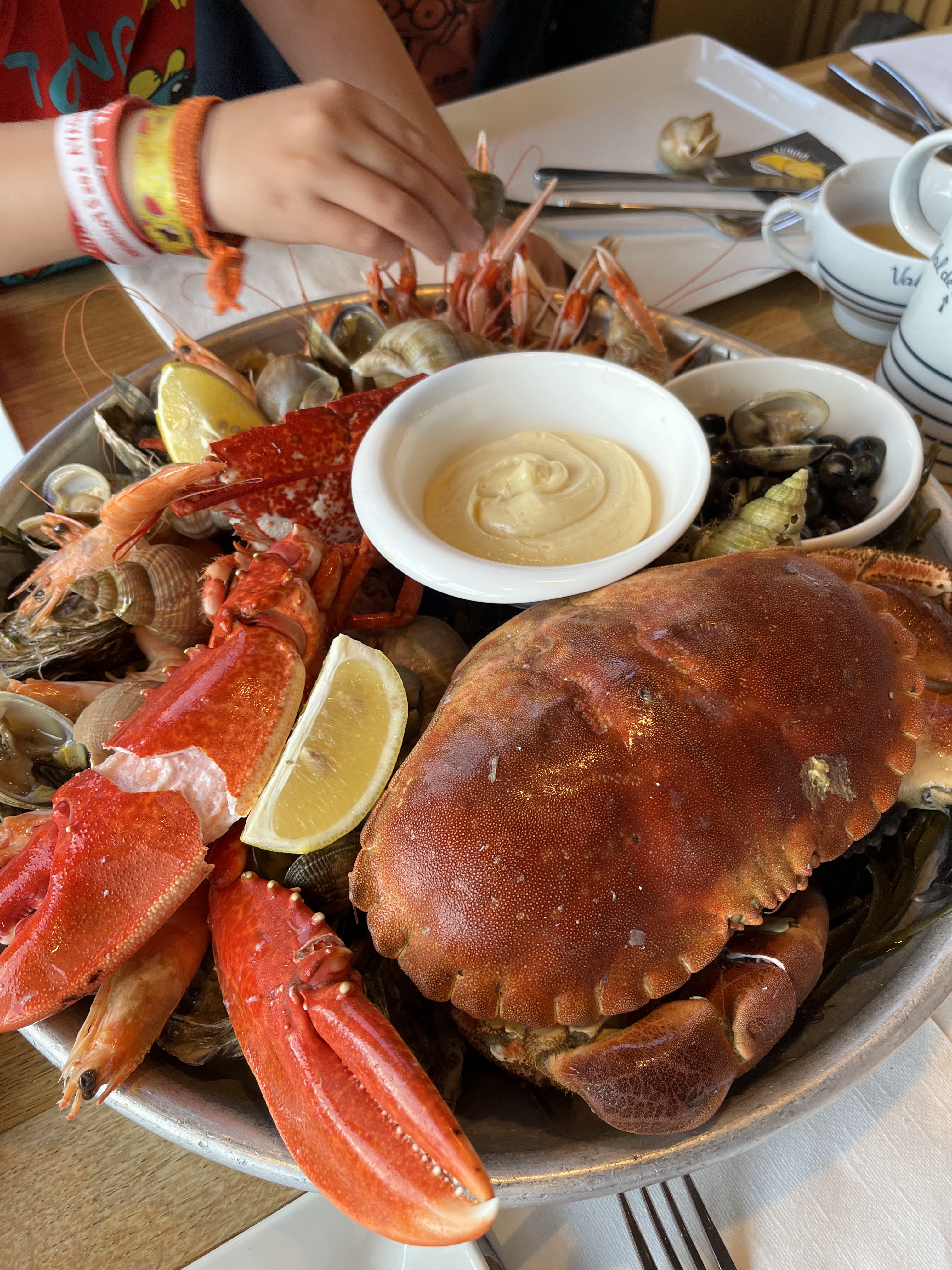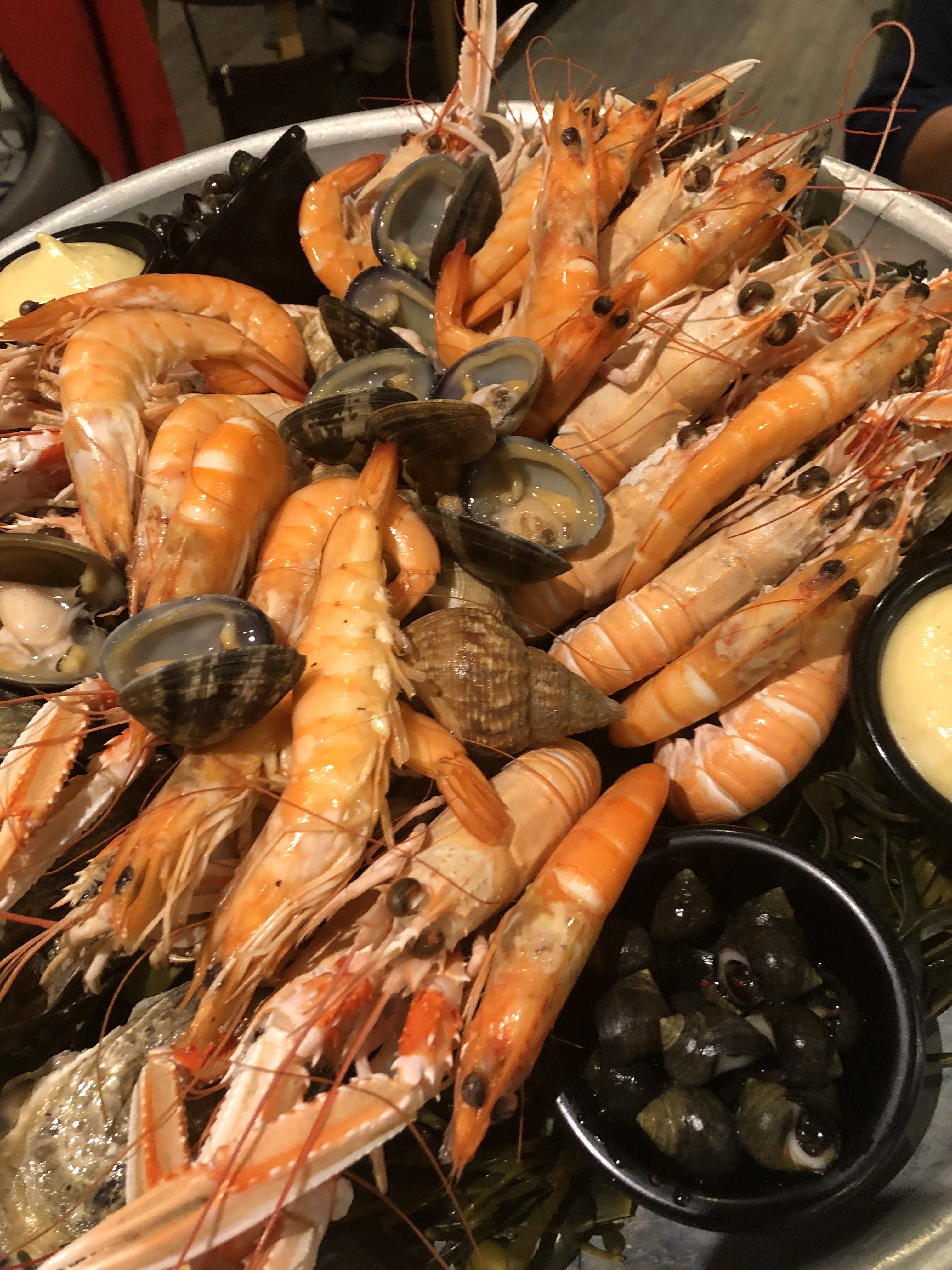 Un très bon plateau de fruit de mer ainsi que des huîtres partagée à deux un soir ensoleillé en terrasse Beaux produits !