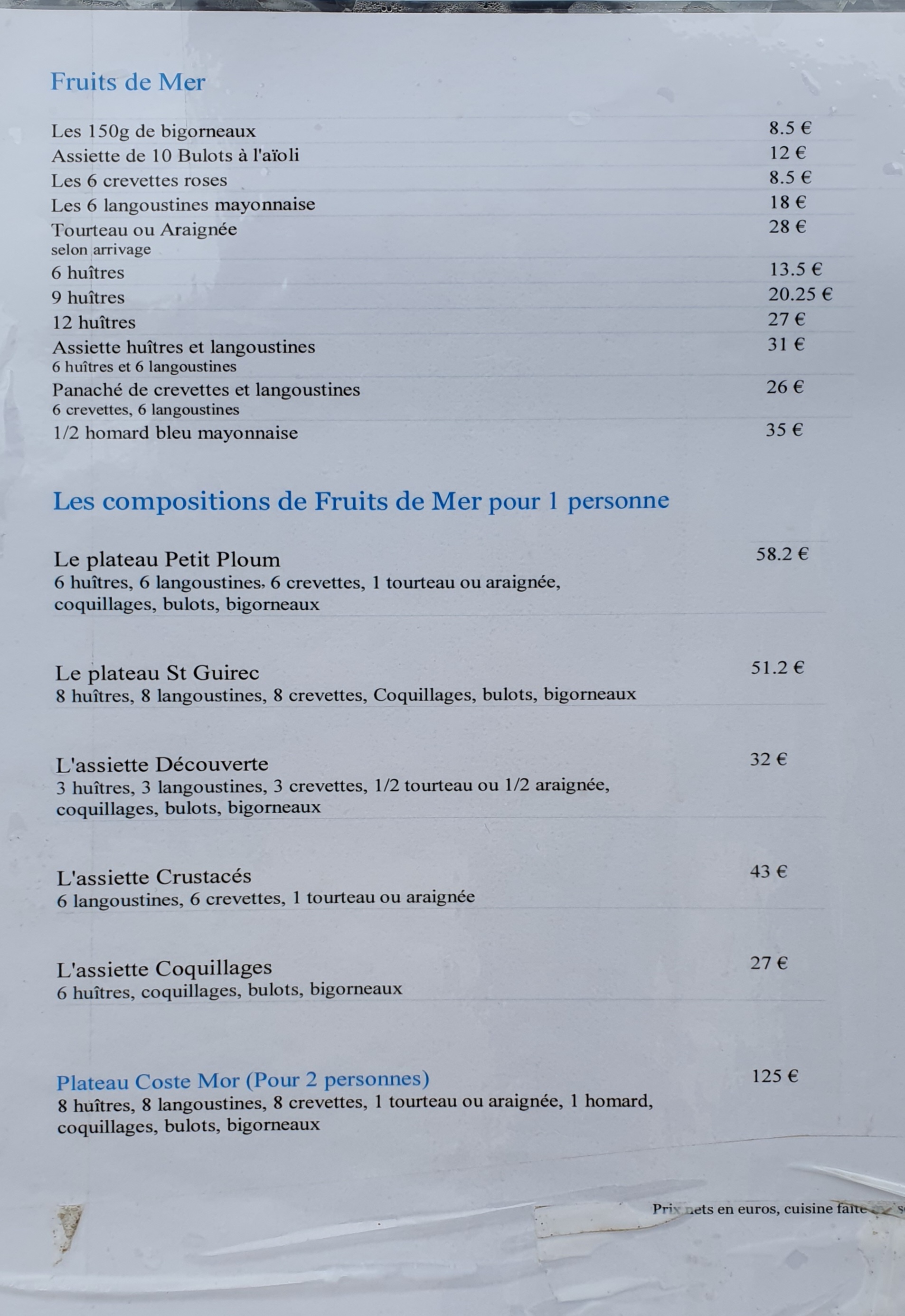 Accueil sympathique malgré les masques (pas facile), superbe plateau de fruits de mer, frais, la salle de restauration est spacieuse avec vue sur la mer - tarifs corrects on a passé un bon moment