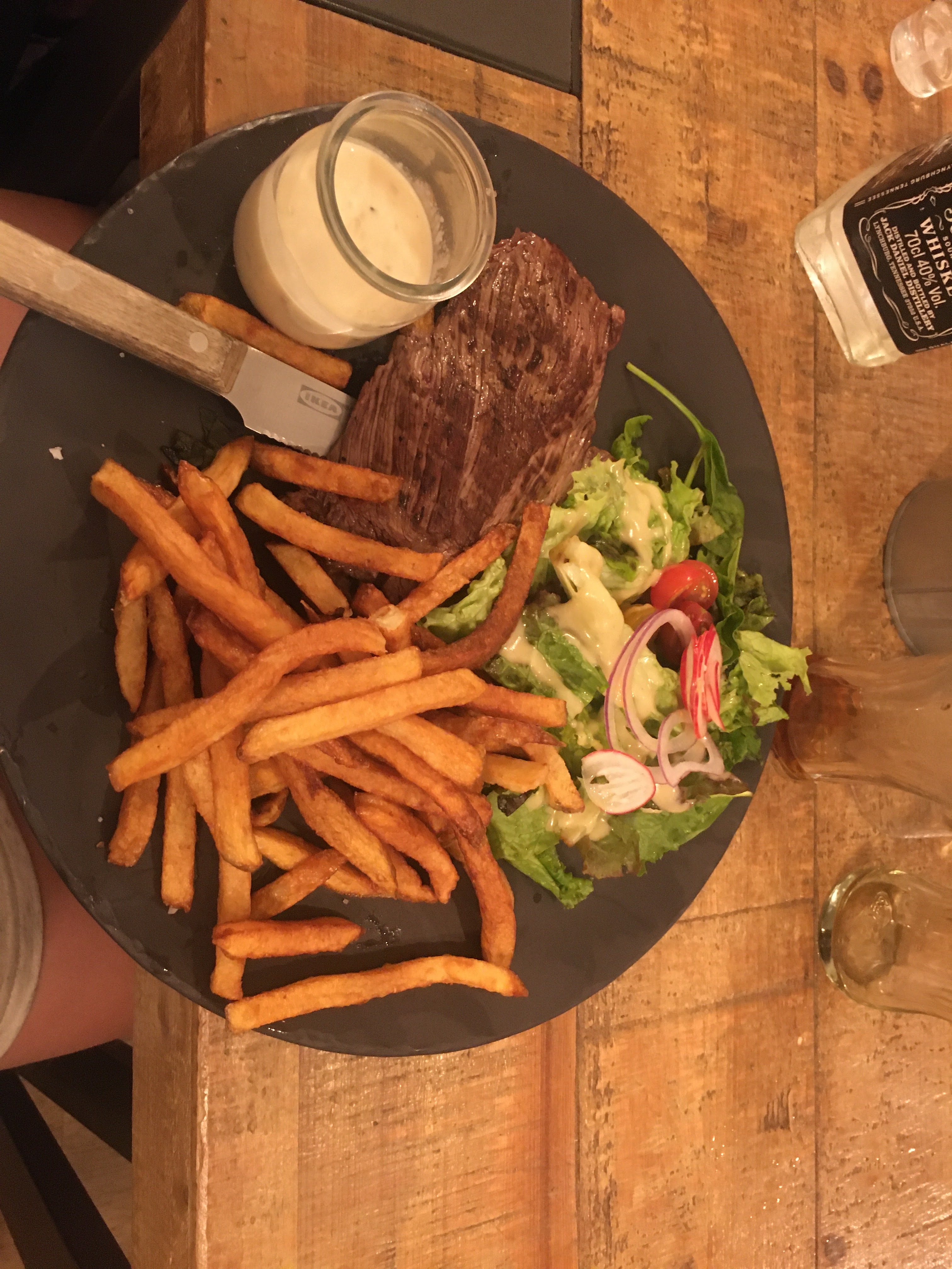 Bon bien que frites très salées de l'avis de tout le monde à la table , assez copieux, prix correct.