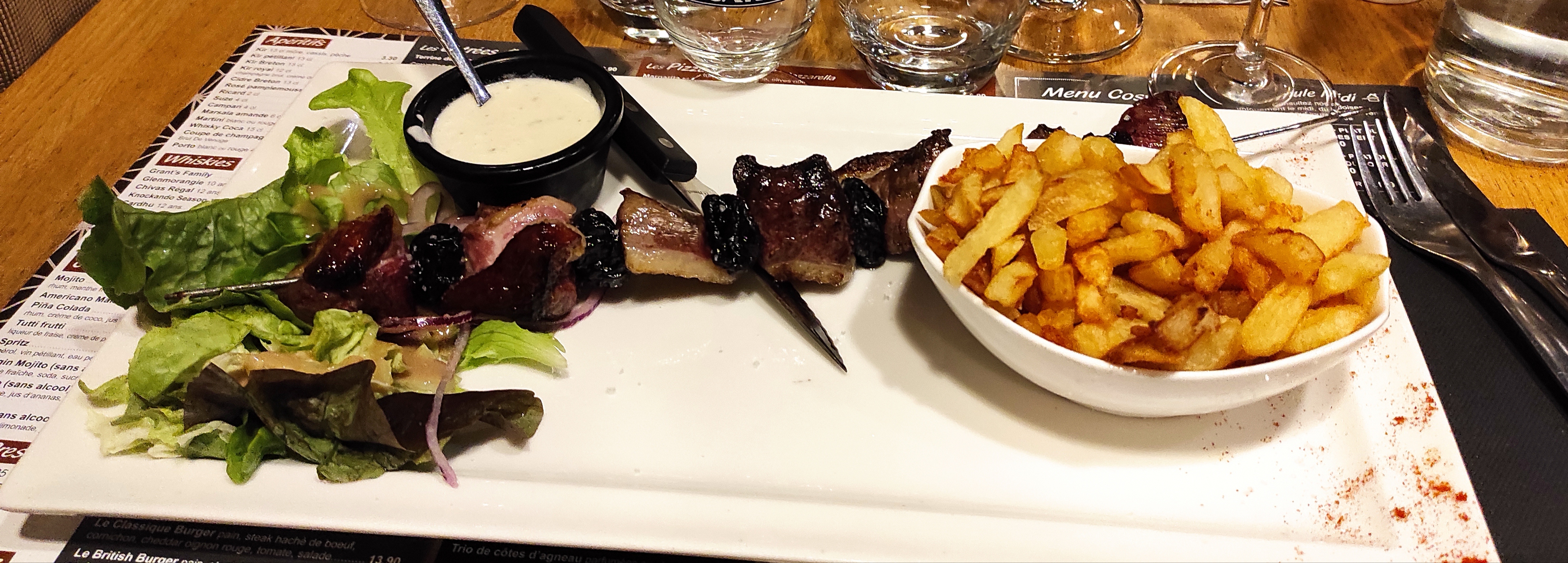 Lieu très agréable serveur grave sympas et marrant belle ambiance cuisine très bien pas chère entrecôte tendre et bavette aussi