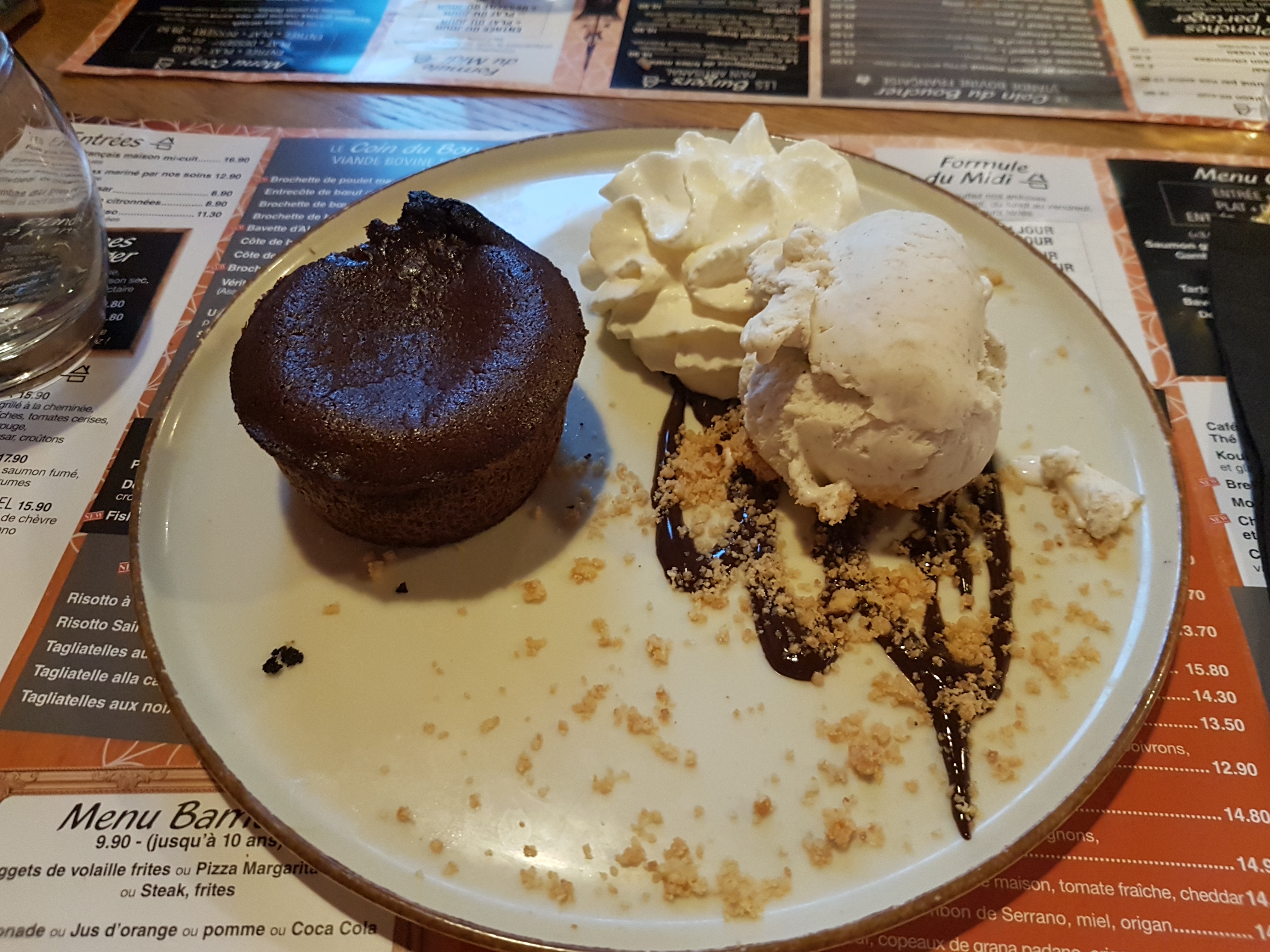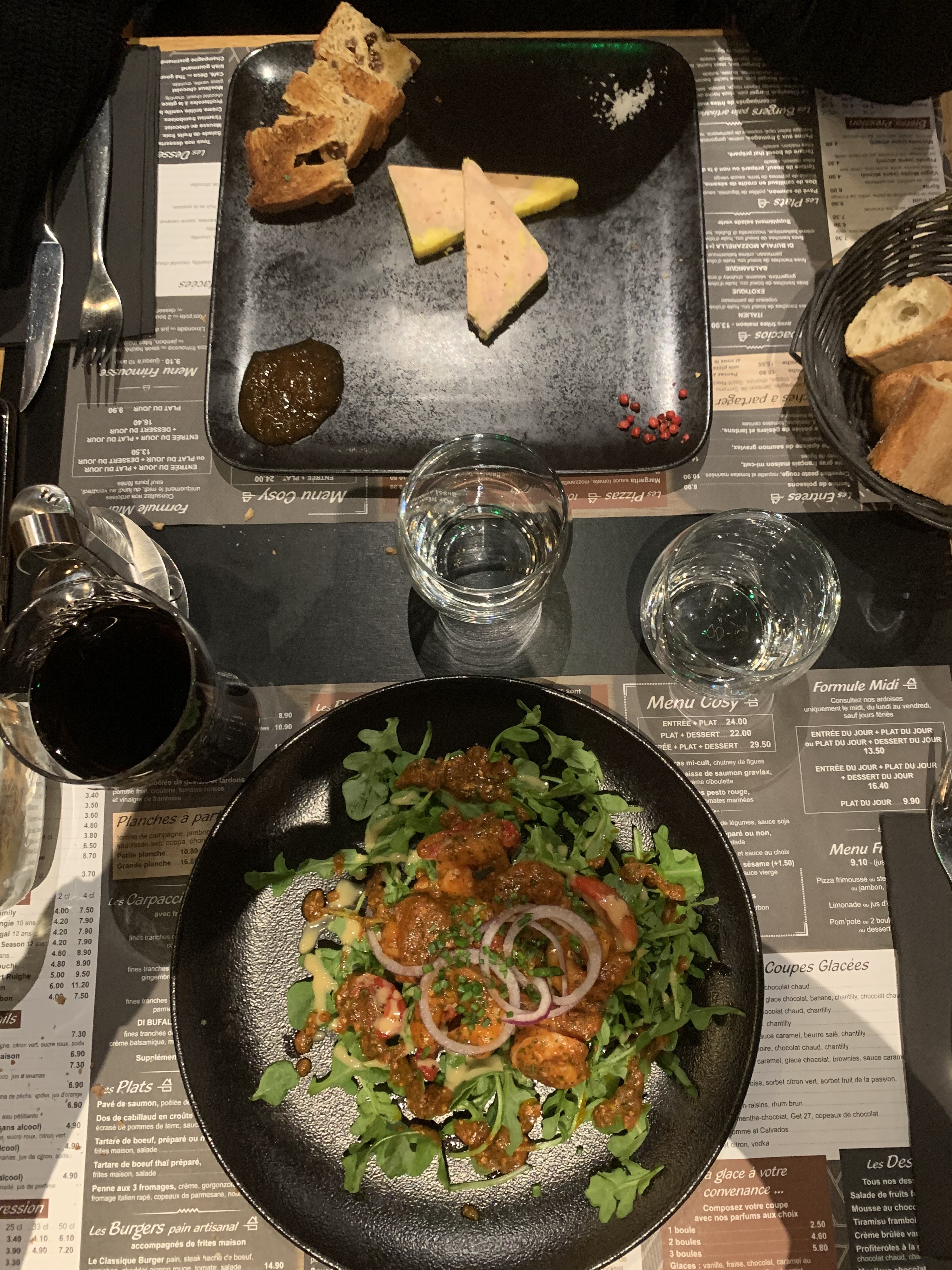 Entrée très maigre pour le prix ! Photo en preuve. Concernant le dessert je cherche encore le caramel annoncé dedans ! Serveur très sympa ! Attention ⚠️ parking pas éclairer et bitume avec des trous, cela m’a value une chute et une entorse …