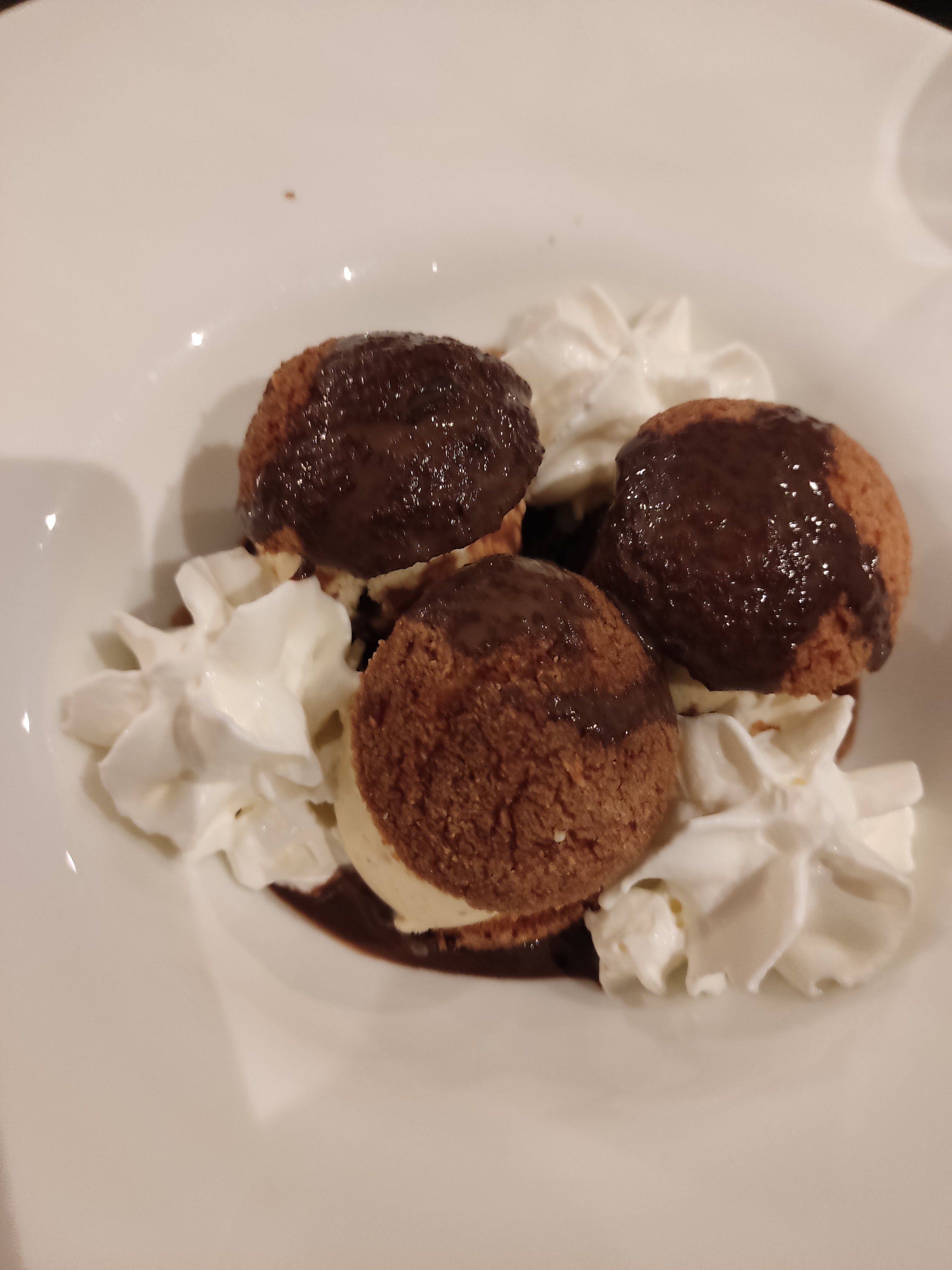 Le plat, tout simplement excellent, le café gourmand proposé en général de 3 mini-desserts, a été présenté de 5 mets différents, belle petite surprise ! Service très soigné.