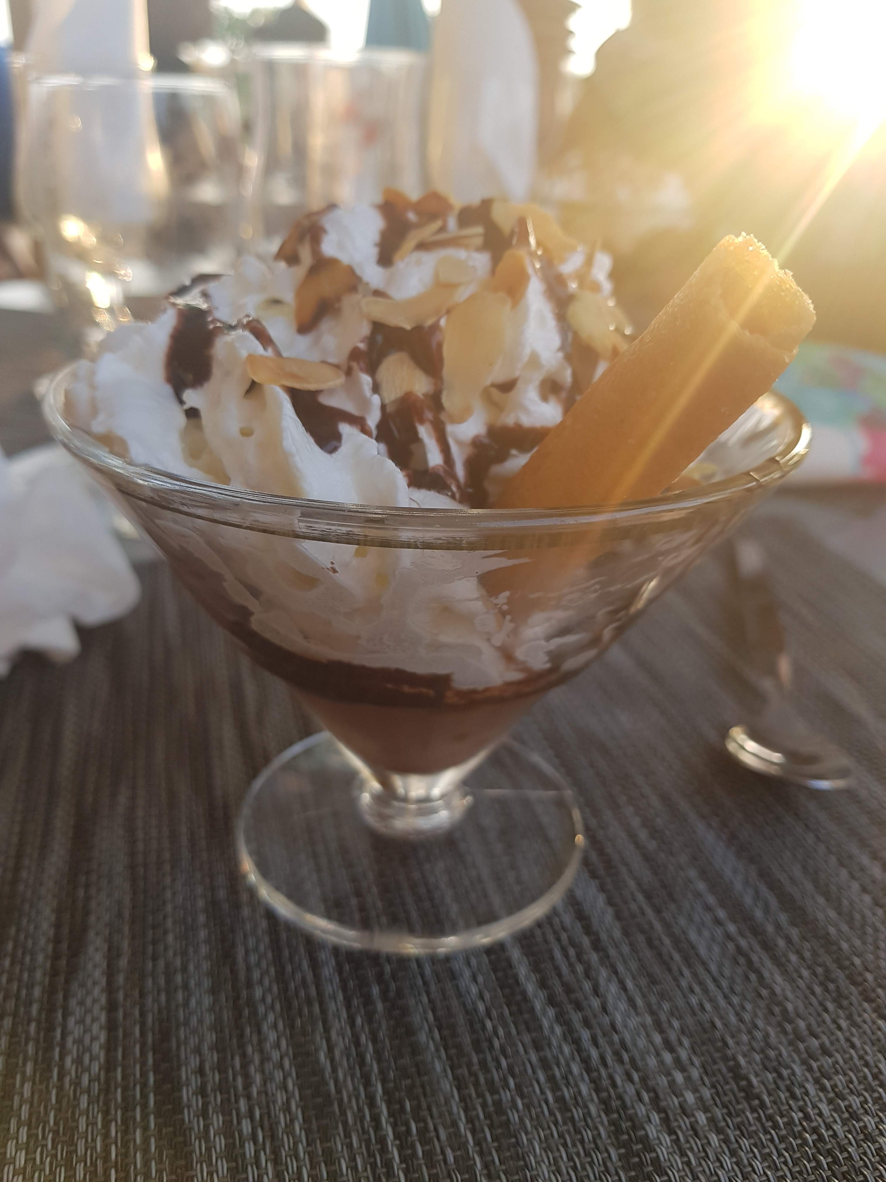 Bonne ambiance, serveurs agréable et poli, je ne peux pas parler des plats car je n’en ai pas consommé. Nous avons juste manger une glace le seul bémol c’est que c’était des fruits en boîte.. Dommage car aurai été meilleurs avec des pêches fraîches.