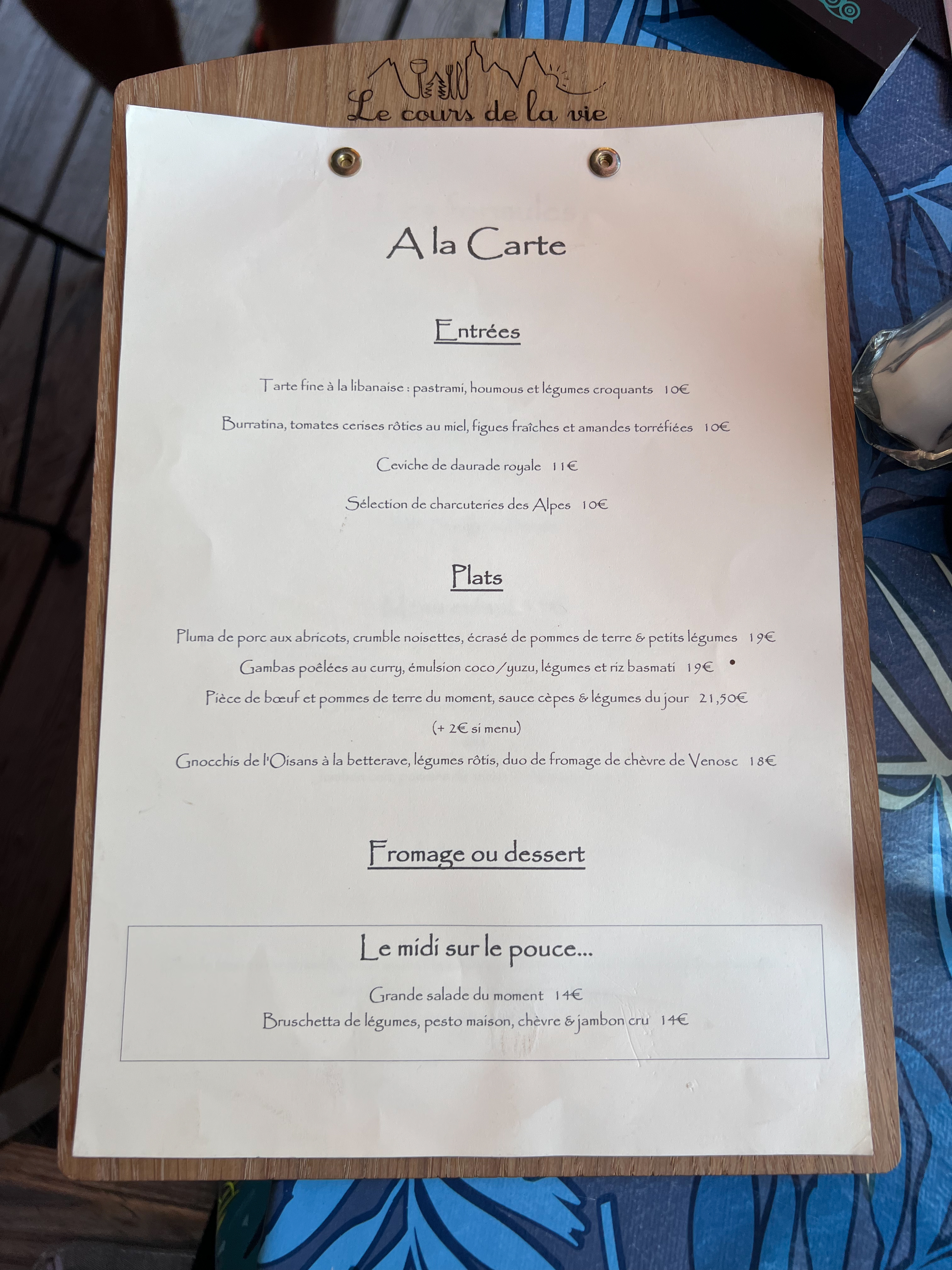 Superbe découverte juste après la via-ferrata de Saint-christophe. Délicieux de l'entrée au dessert, et très bon conseil pour l'apéritif. Un prix plus que raisonnable pour des produits locaux, maisons et travaillés! Nous sommes végétariens et avons trouvés notre bonheur. Nous avons hâte d'être à nouveau de passage pour y manger à nouveau, merci à vous 😊