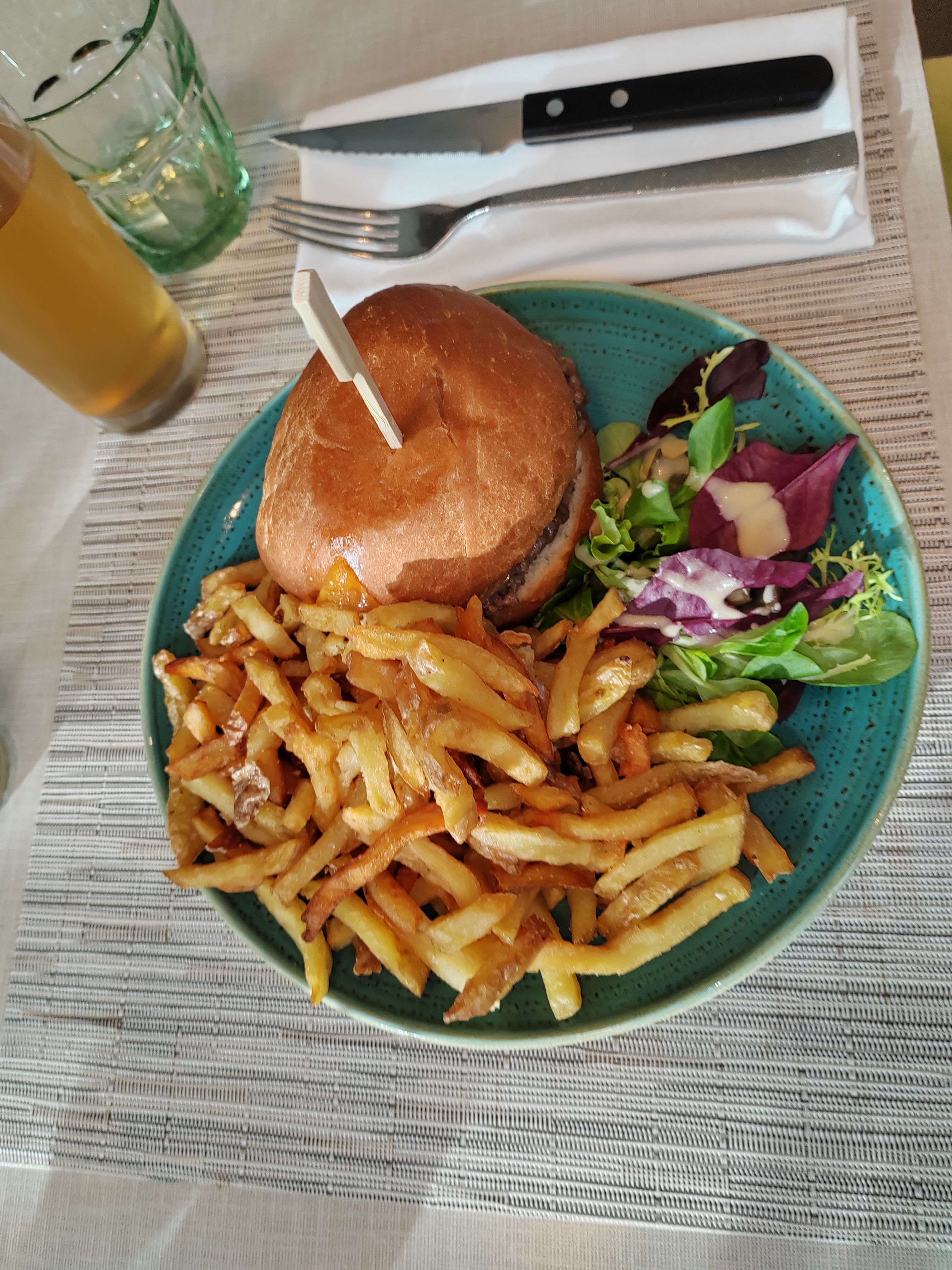 La viande est très tendre et bien cuite. Les frites maison sont un vrai plus. Un poil cher mais la cuisine est bonne ! Dommage pour le pain beurre pas arrivé à temps.
