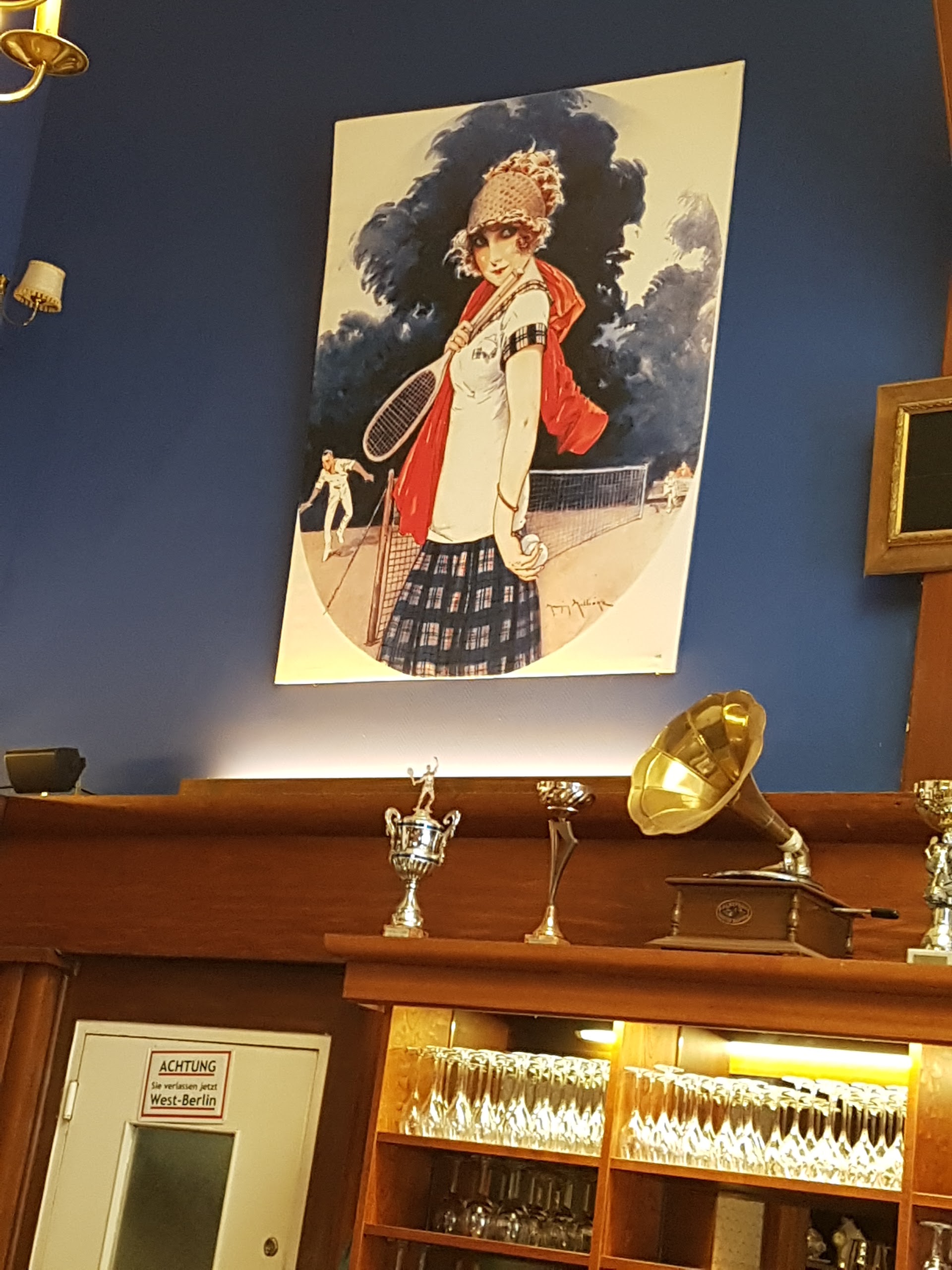 Nous nous sommes arrêtés pour une coupe de champagne et ce fut une visite charmante. Personnel extrêmement sympathique et bons paysages et espaces extérieurs. Il y a une petite salle à côté du restaurant qui partage la riche histoire du club de tennis.