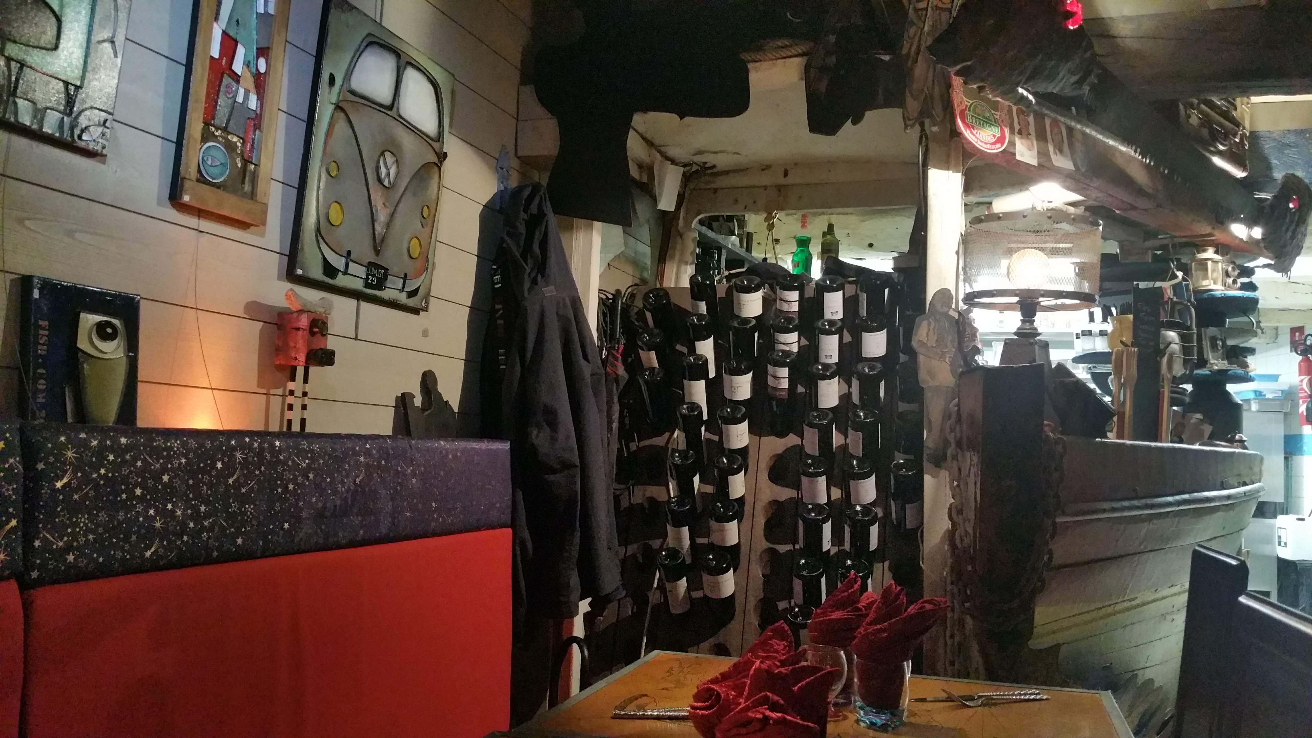 Cadre tout-à-fait dépaysant, on se croirait dans une taverne de vieux loups de mer 😁 Le patron est très accueillant et très attentif à ses hôtes. Cuisine goûteuse, fond musical un peu Rock, bref une belle atmosphère qui sort du lot des restaurants touristiques sans âme. Bravo à la cuisinière ! Je recommande 👍👍👍
