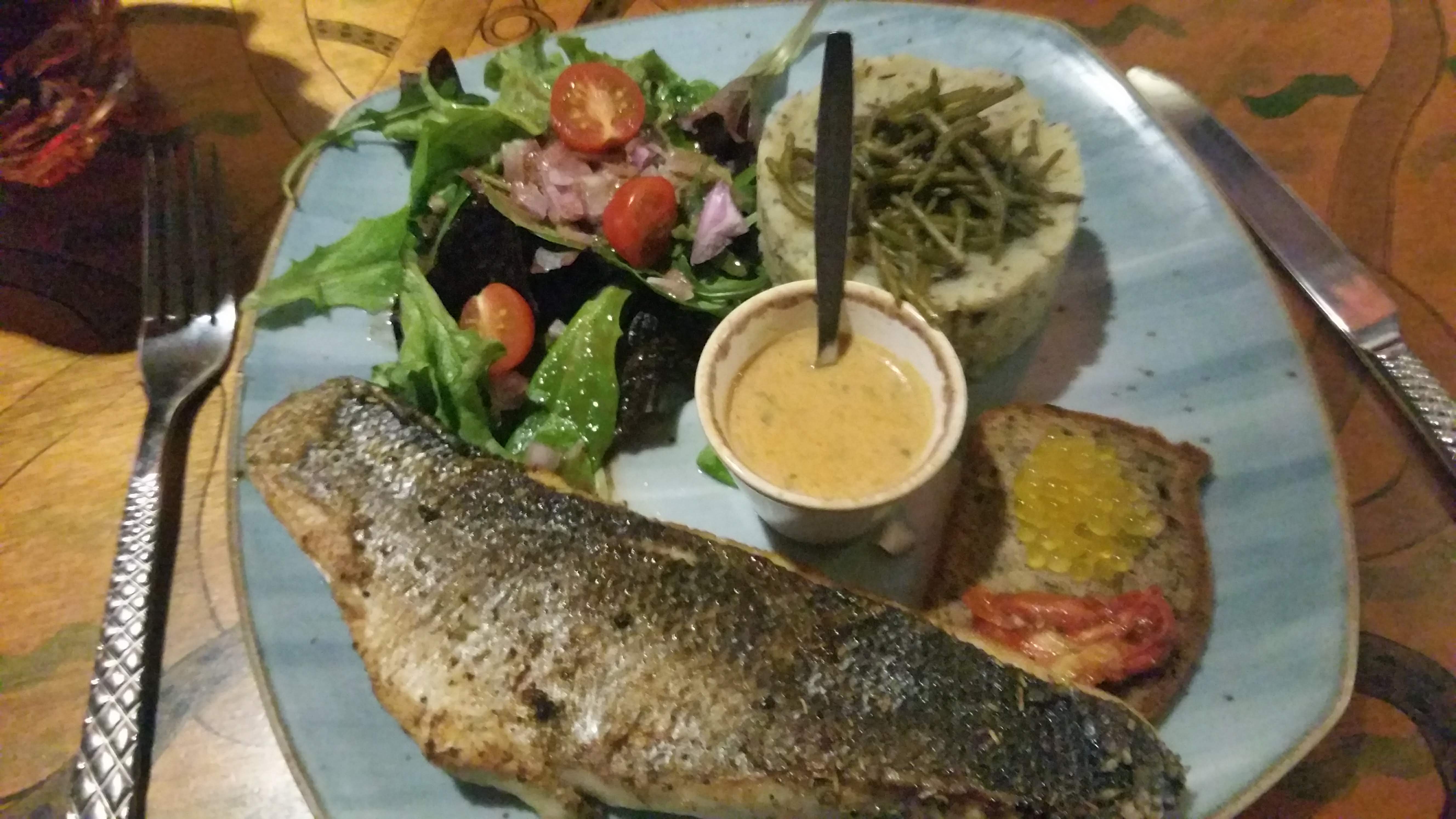 Un panneau, dernier resto avant le prochain, nous a incité à aller tenter notre chance. Un jeudi soir pluvieux, un peu tard...et..super accueil jovial et convivial. Du poisson frais et assiette gourmande. De très bons desserts. Une bande son rock impeccable. Bref une très bonne soirée à Concarneau. N'hésitez pas !