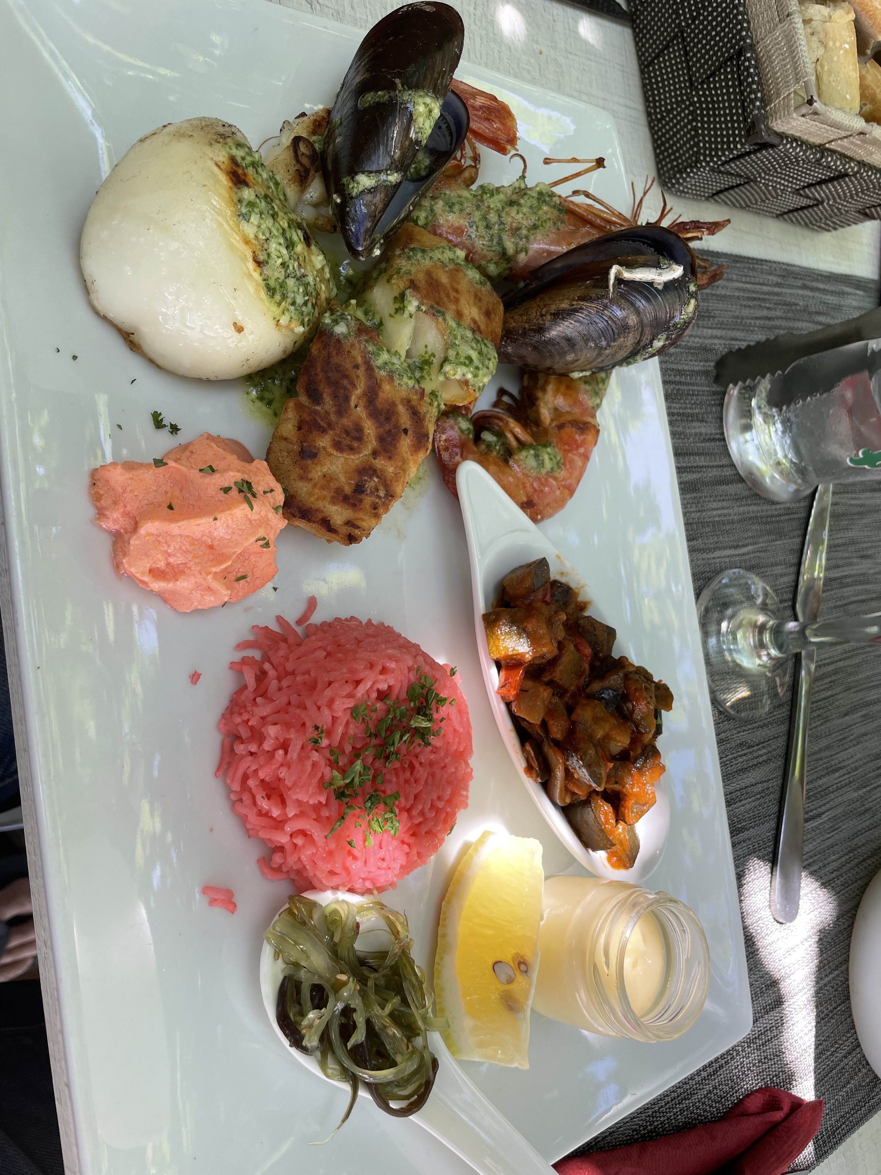 Très belle surprise ! Un peu à l'écart de la foule et belle terrasse Mojito au top ! Menu du jour pour moi à 15 euros avec une excellente brochette de bœuf Parillade de poissons pour mon mari, copieuse et délicieuse - 22 euros - c'est très raisonnable Personnel sympathique Nous reviendrons
