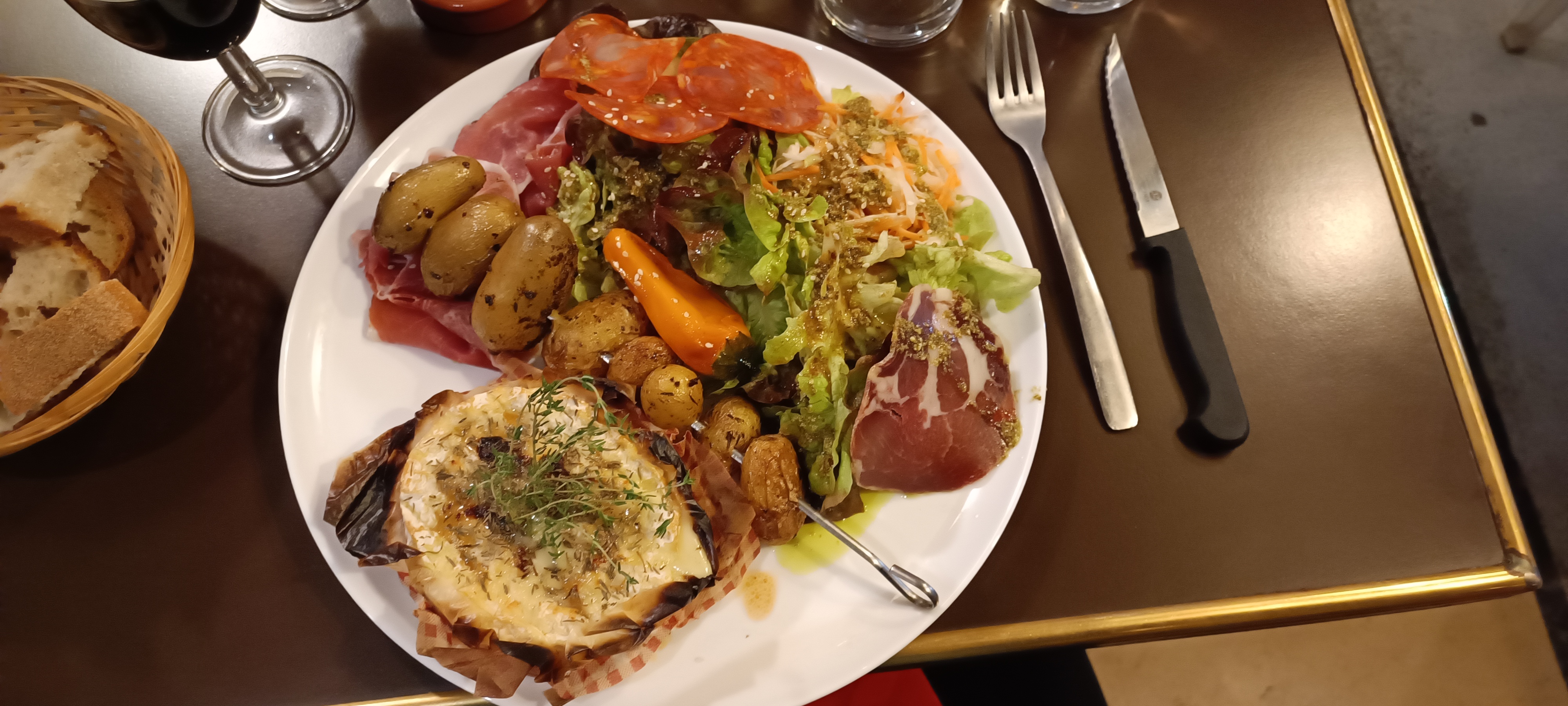 Première visite passant devant en allant à la base vers un autre restaurant 🤫 Accueil souriant et chaleureux Après un petit apéritif, place au plat choisi sur la carte.... Camembert rôti avec charcuteries accompagné d'une brochette de grenaille le tout servi avec le sourire 😁 Verdict ..... Obligé de revenir goûter le reste de la carte 👍 Faites comme nous arrêtez vous, vous ne serez pas déçu Merci et à très bientôt