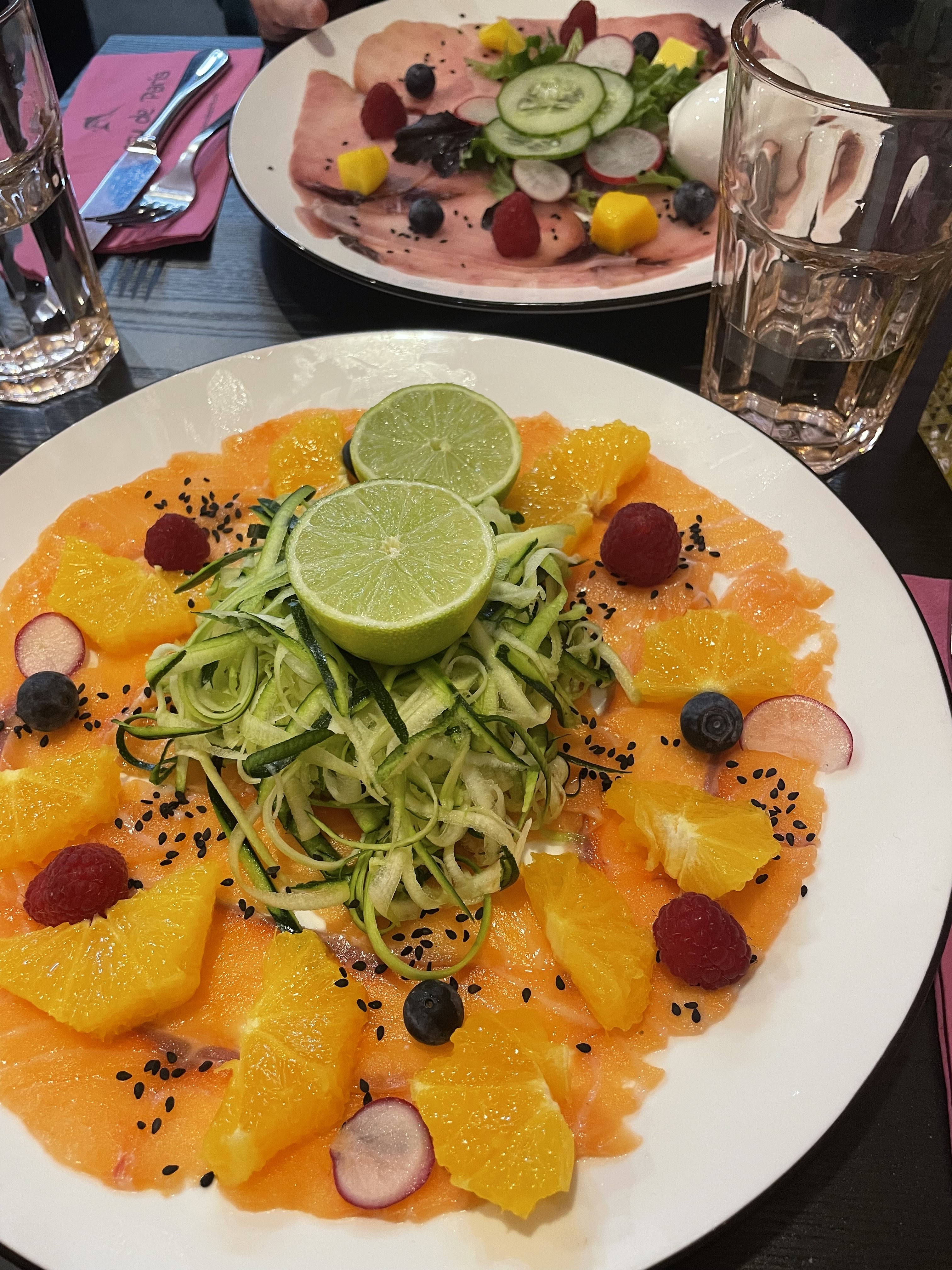 Wahou, salade, pizza, et surtout carpaccio, très bon Merci pour le service. Nous reviendrons demain 😉