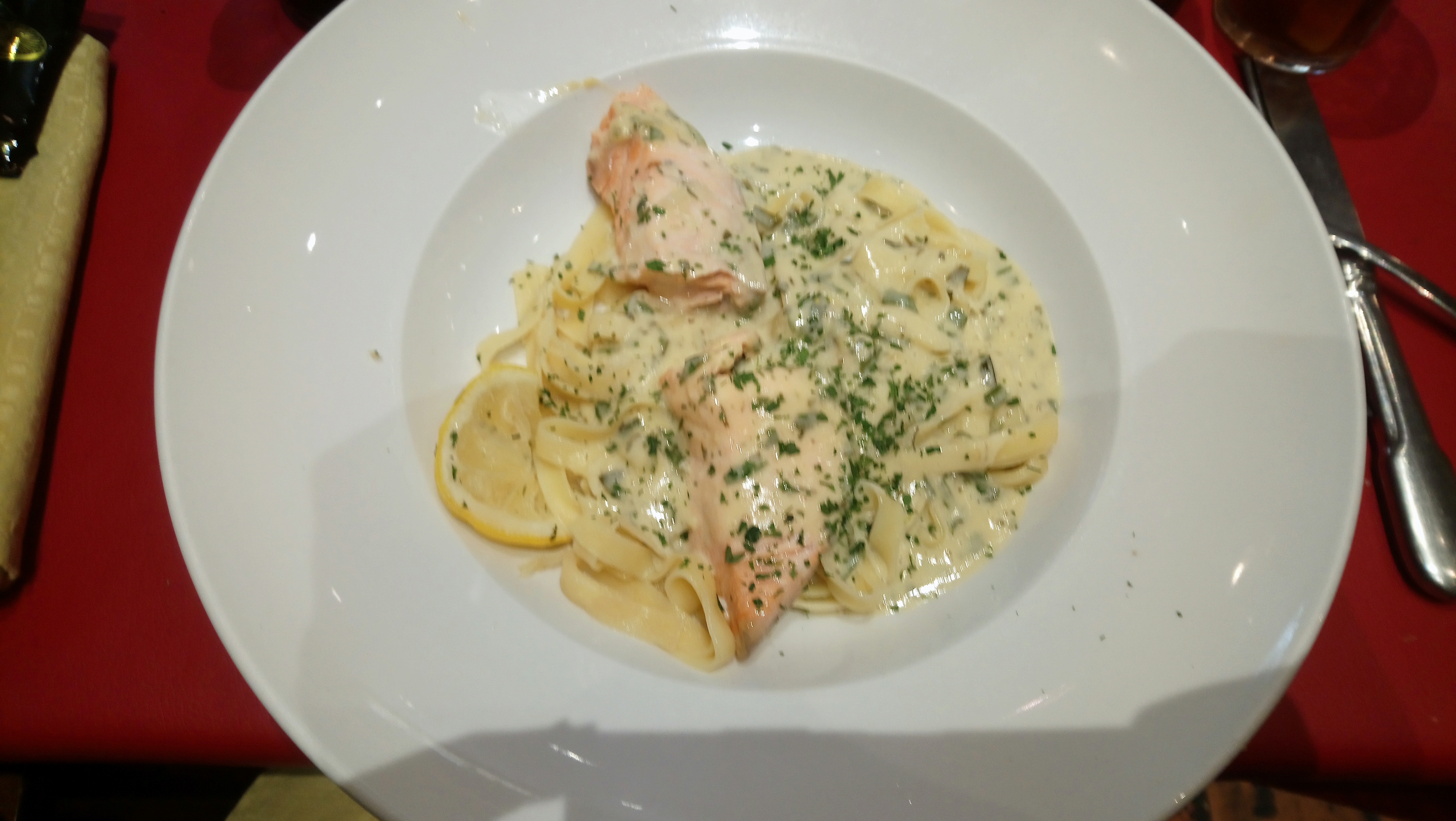On était trois a manger. Le temps d'attente plutôt correct. Le pain n'est pas bon, frais de 2 jours minimum, les tagliatelles aux saumons plutôt bonne, le steak....ne prenez JAMAIS le steak... Les pauvres serveurs sont débordé. Les chiens sont acceptés (bon point). Les prix sont abordables, mais sont cher au vu de la qualité globale. Je ne recommande pas.