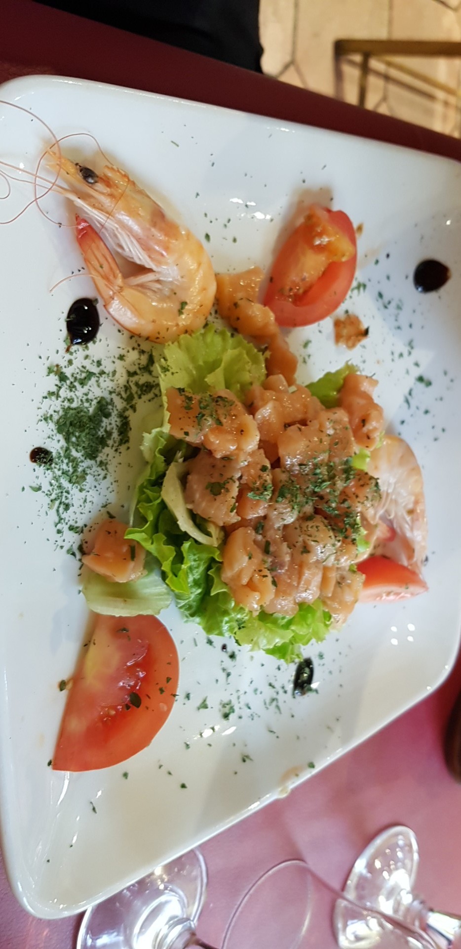 Franchement pour l'instant le pire restaurant dans lequel je suis allé manger la propriétaire m'a arrêté de pas de crier sur les serveurs sans aucune gêne de taper son café à chaque fois qu'elle en faisait un sans se soucier du boucan que cela fait dans ce petit restaurant. Quand à la nourriture comment dire exécrable un tartare de poisson tiède sans aucune saveur envie de vomir plutôt .pour ma part j'avais pris une friture je pense qui avait déjà été frit, aucun intérêt tout mou trop salé vu la présentation sur la photo elle parle d'elle-même !quelle honte de servir ce genre de plat une mousse au chocolat je ne sais pas pourquoi est servi dans un bocal à conserve trop grand et à la première cuillère elle se liquéfie .le reste des desserts de base surgelée donc voilà mais pour les plats aucun intérêt à manger dans ce restaurant je dirai à cette propriétaire quand on met des fleurs autant mettre des fraîches sinon on enlève les pourris.
