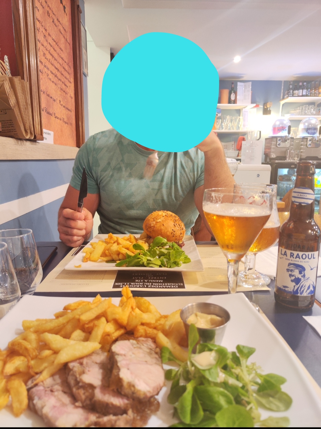 On y a bien mangé mais j’aime pas qu’on nous prennent pour des jambons. Quand on trouve ce qui ressemble à une vellele cuite dans le plat de moule on nous répond que c’est un bébé moule. Un bébé moule ça fait 5cm et c’est transparent? Vous êtes sûr ? Ajouter 2€ de supplément pour cause covid, quel intérêt, quel but?
