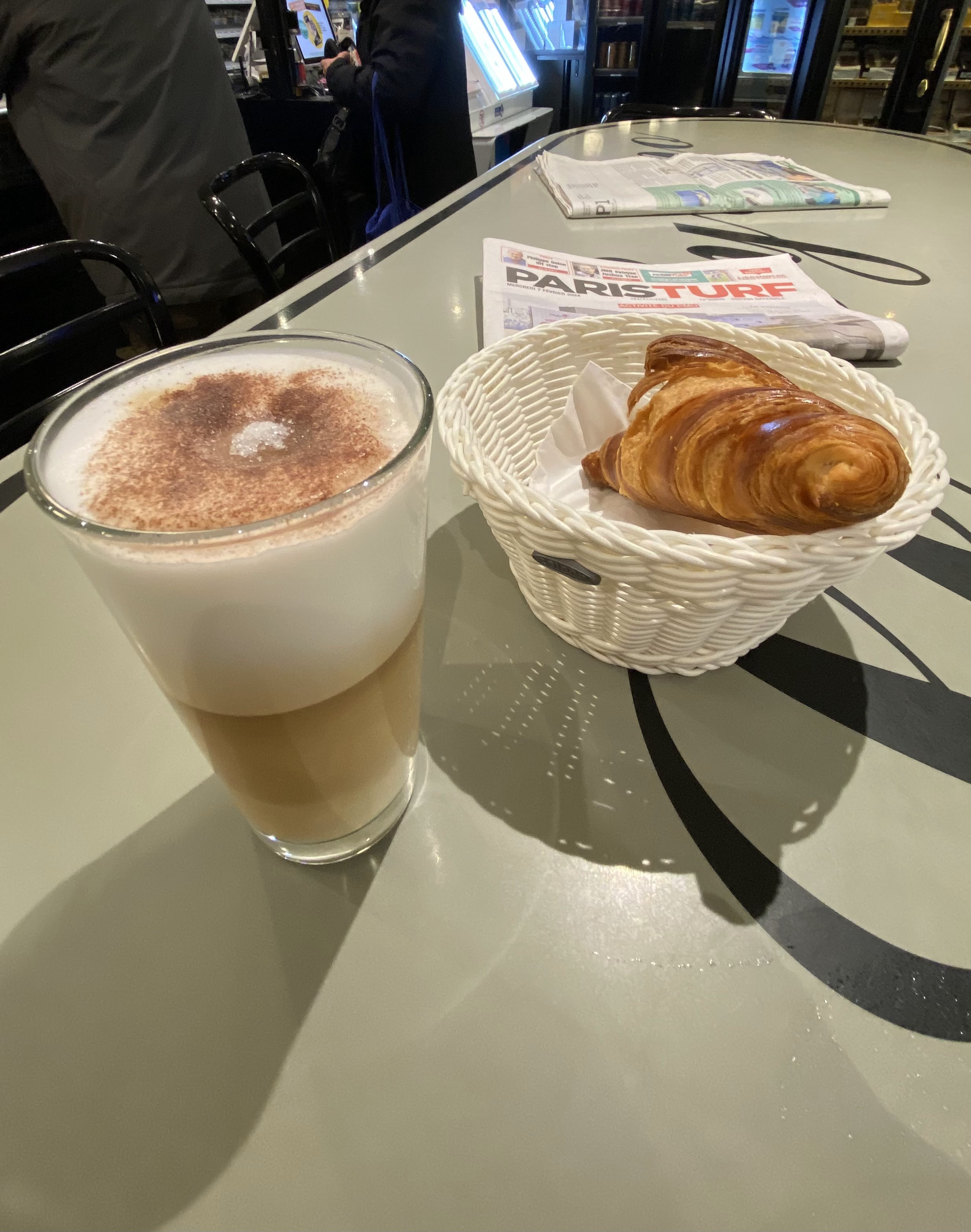 Endroit très français avec un merveilleux serveur français authentique. Au mur, Alain Delon. En général, la vieille France telle qu'on l'aime. Les croissants et le café étaient bons.
