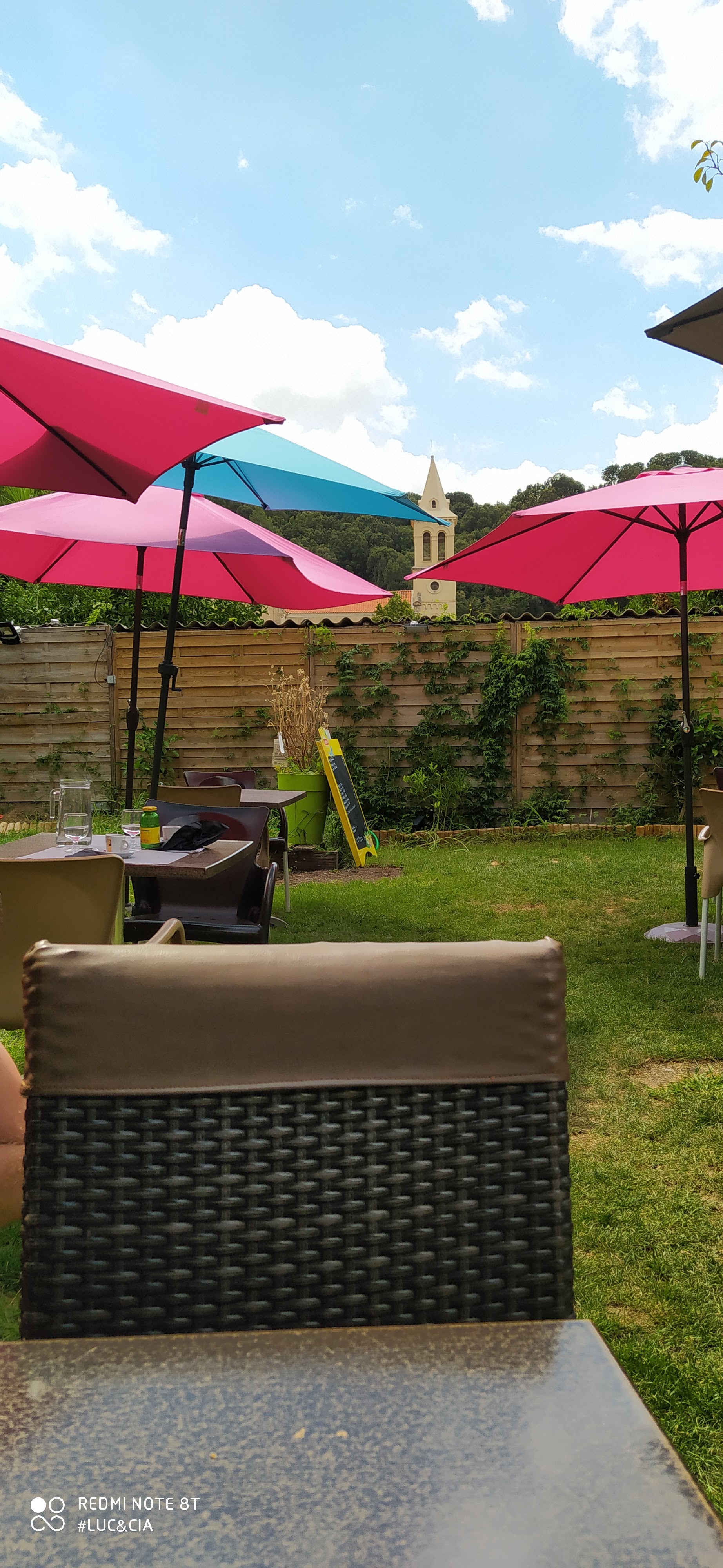 Terrasse sympa pour être au frais. Personnel accueillant et sympa. Et le contenu du repas ....y a 5 étoiles....donc on a aimé 😉