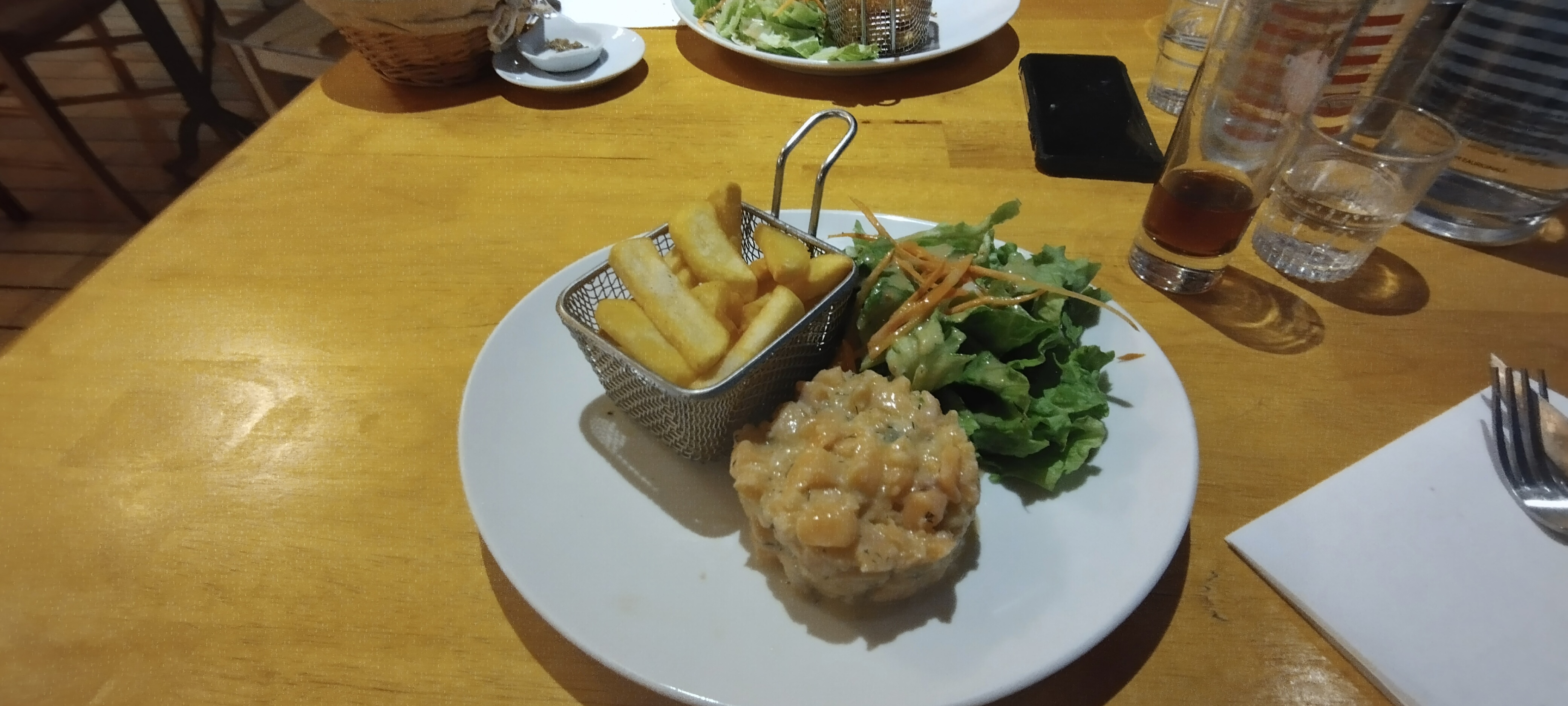 Fuyez ! Restaurant vide à 20h30 et je comprend mieux pourquoi . Plat surgelé une galette industrielle et un steak haché tartare au allure de bouillie verdâtre pleine d’eau ! Patron qui fait des réflexions quand vous ne finissais pas votre assiette et nous attendons toujours la Mayonnaise !