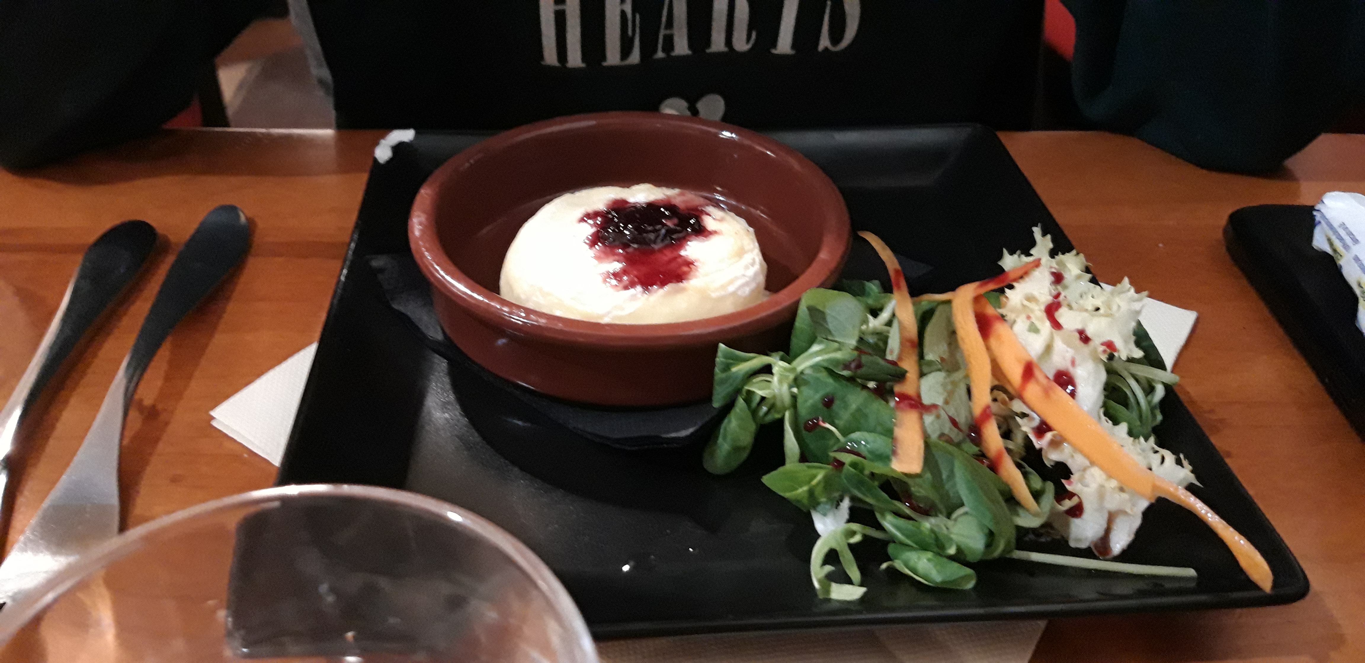 La nourriture était trop bien fait. J'ai eu le saint Marcellin avec de la confiture des griottes. Pour le plat principal j'ai pris le cassoulet qui était trop bien. Pour finir notre expérience, nous avons eu le Bannofee qui était incroyable !