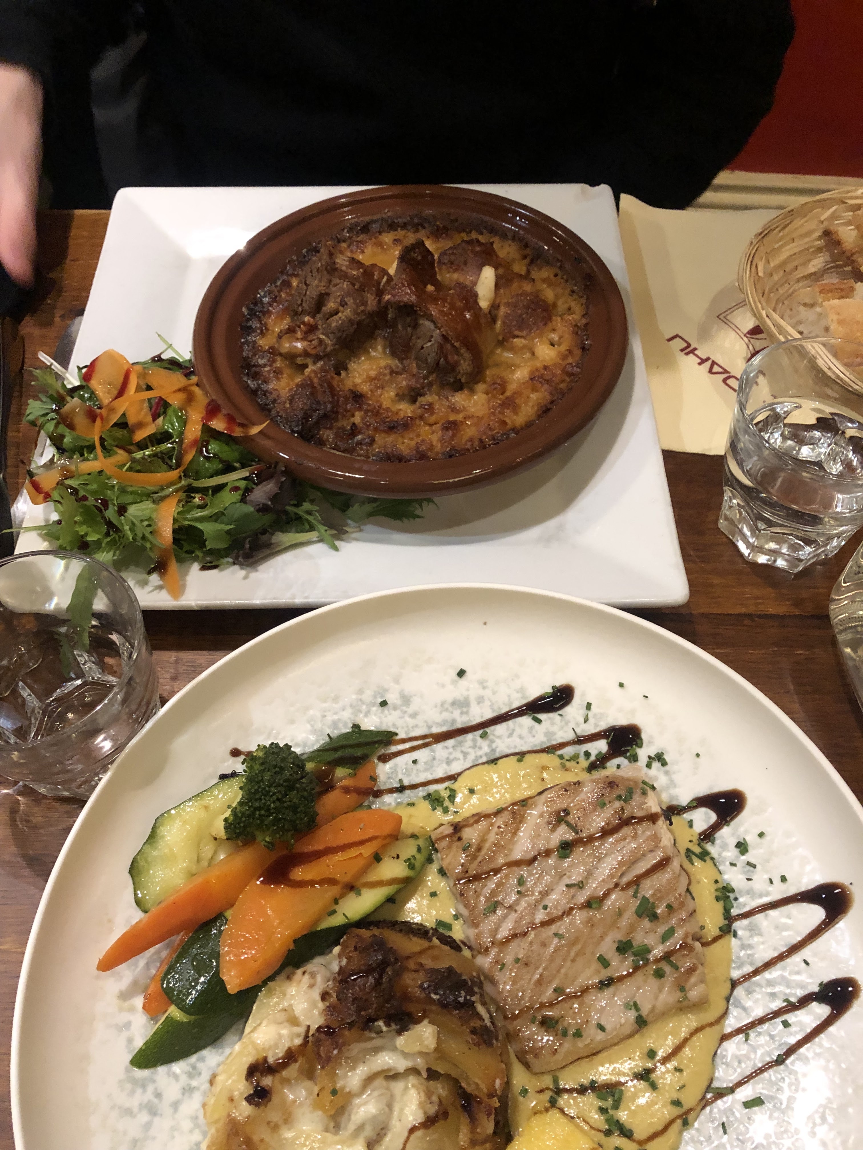 Super découverte et gros plus pour la salle en cave. Des plats simples mais excellent mention spéciale pour l’onglet de veau sauce fois gras et la tarte tatin ! Comme quoi à force de le chercher on l’a trouvé le dahu 😉