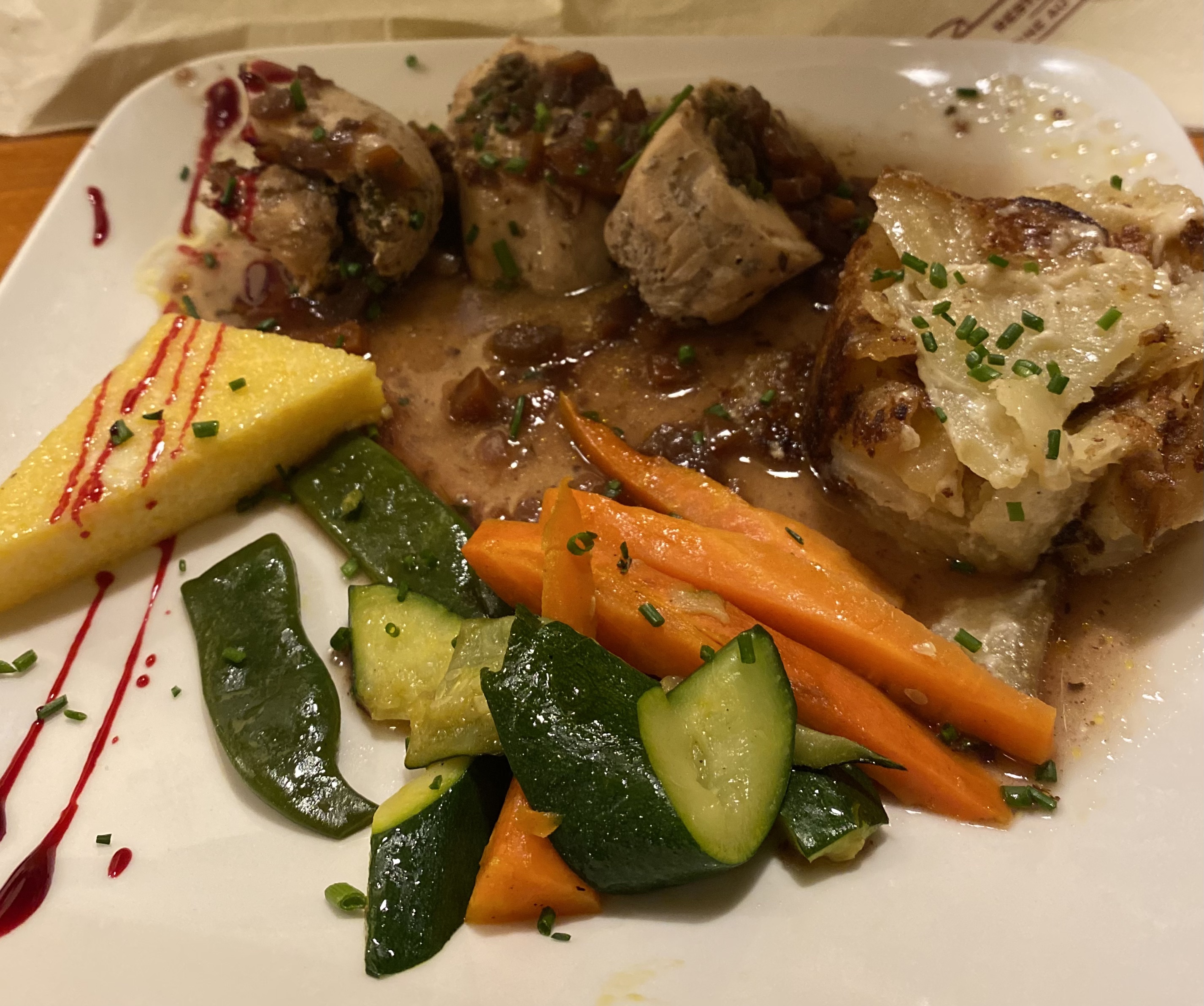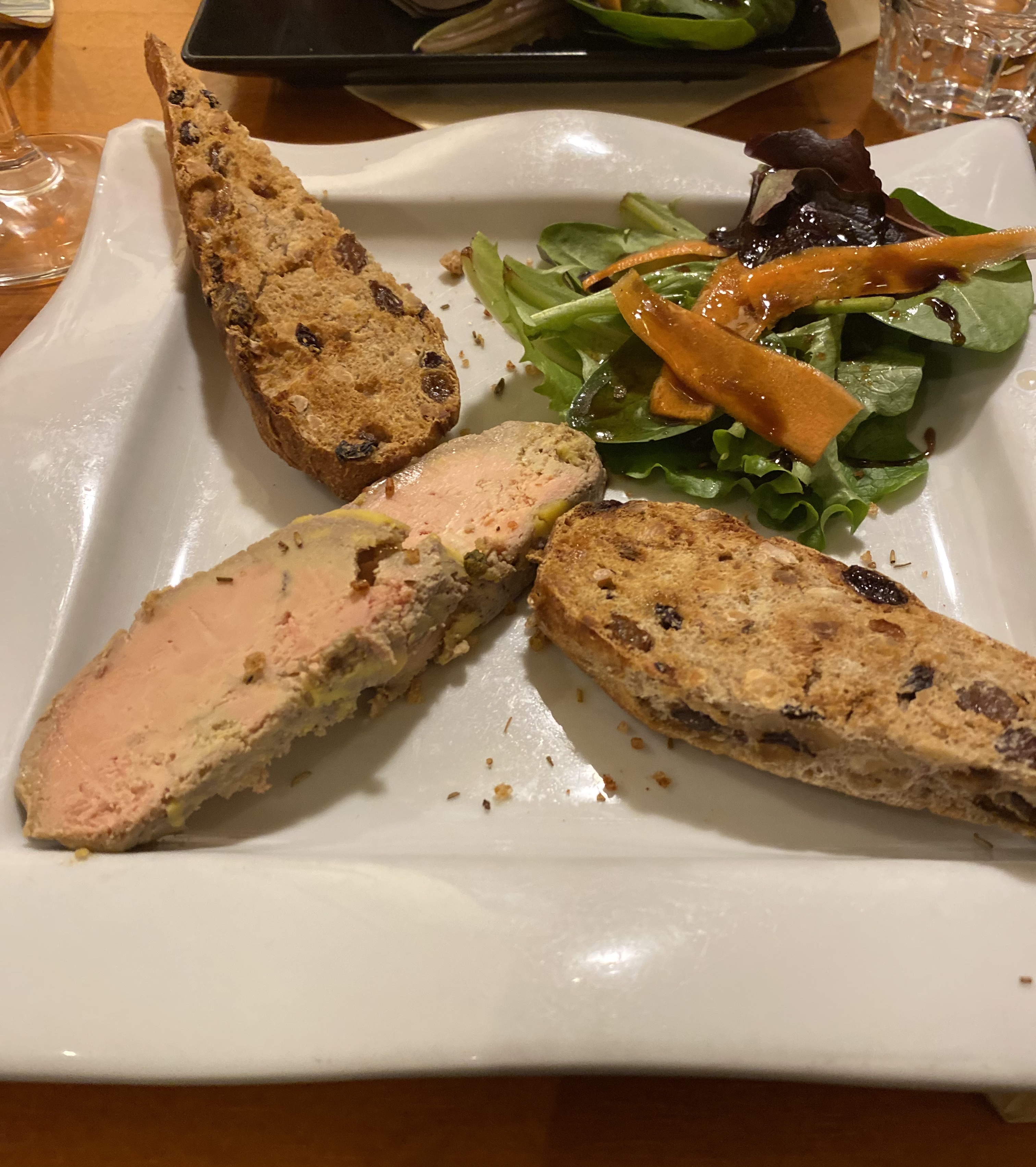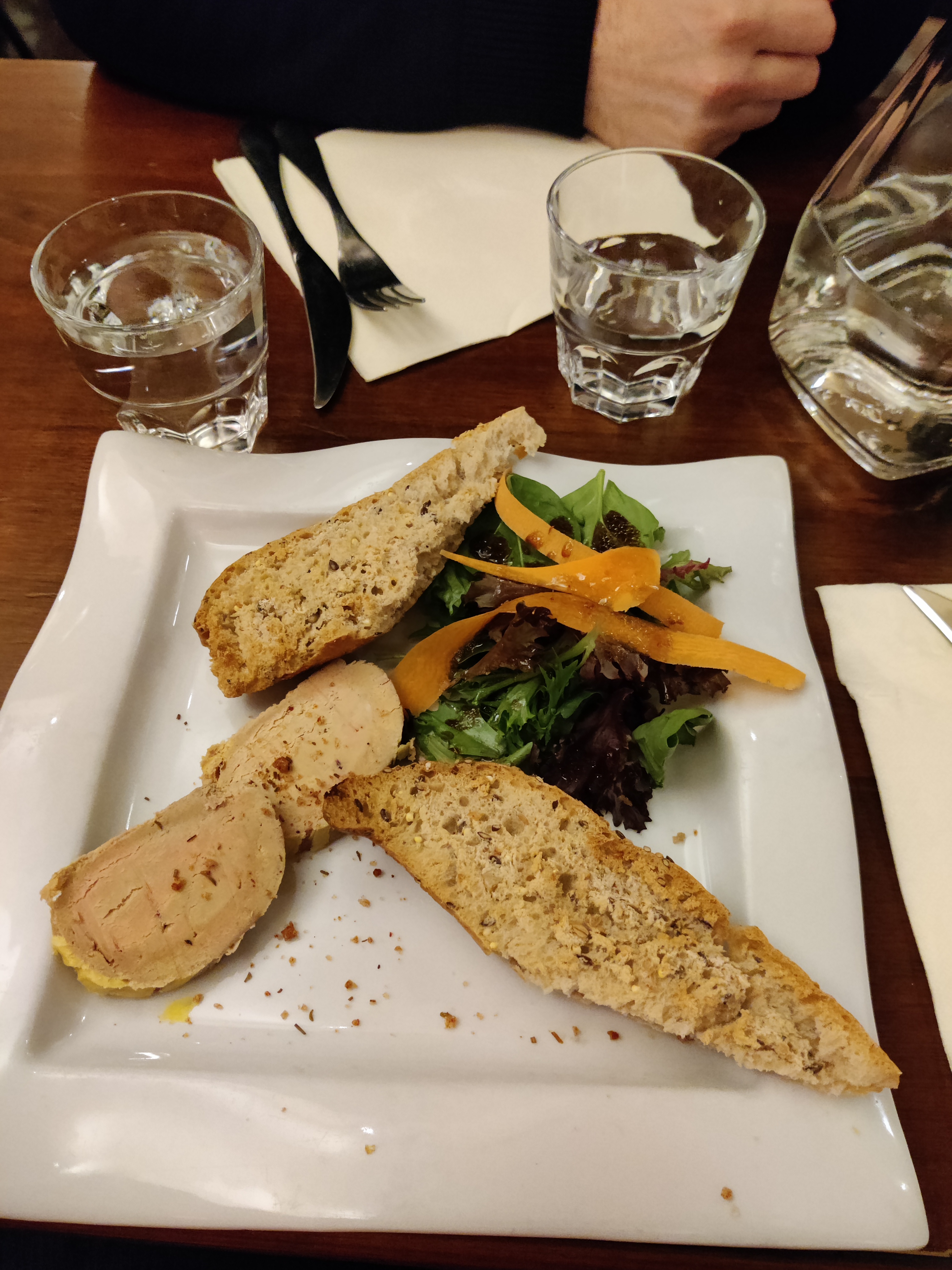 Tout était très savoureux. Foie gras et cassoulet ont beaucoup aidé à se réchauffer après une balade par temps frais 😀