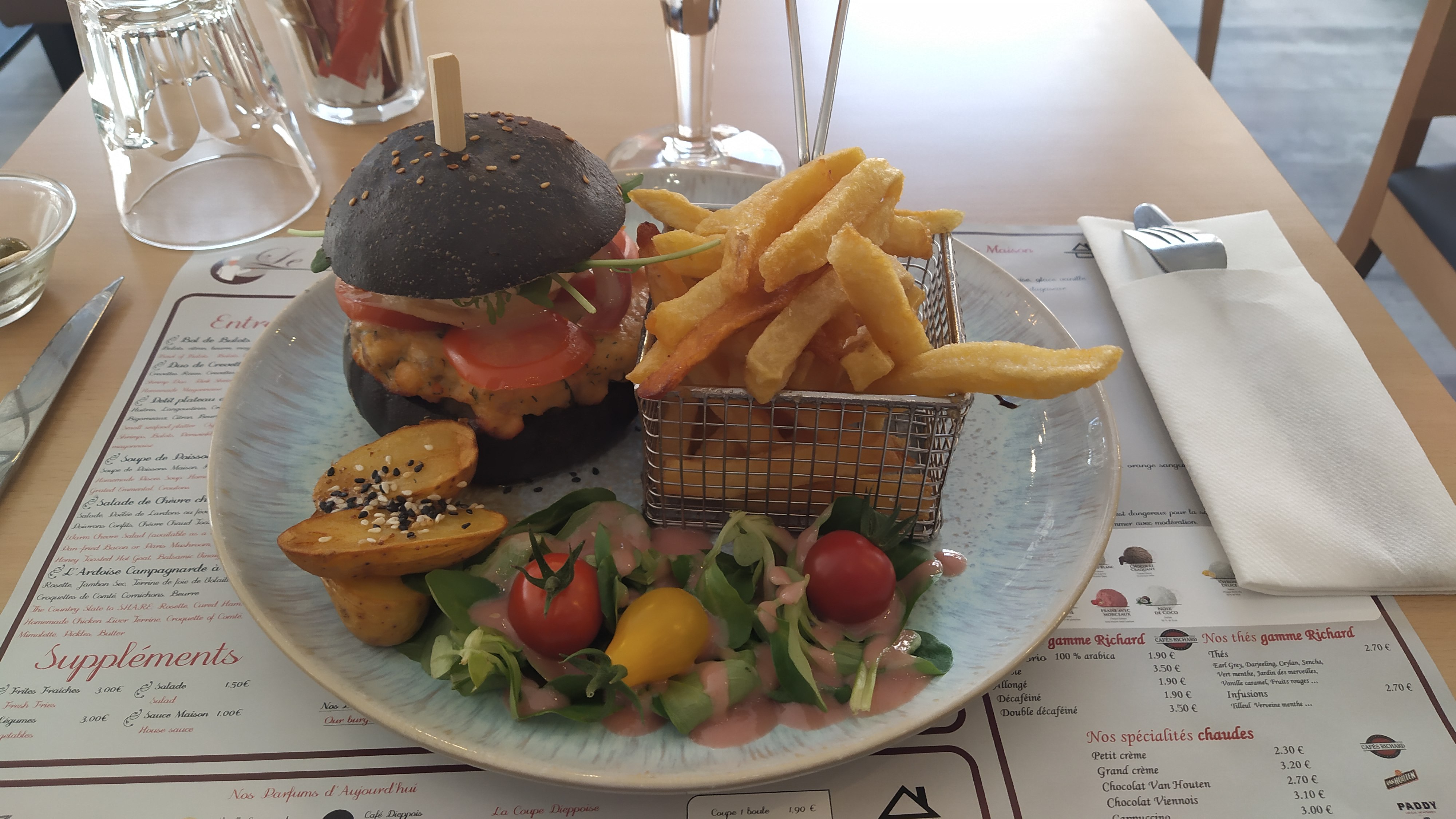 Dos de cabillaud excellent et rarement vu un café aussi gourmand ! Je reviendrai avec les enfants pour qu'ils puissent goûter les burgers qui avaient l'air appétissant !