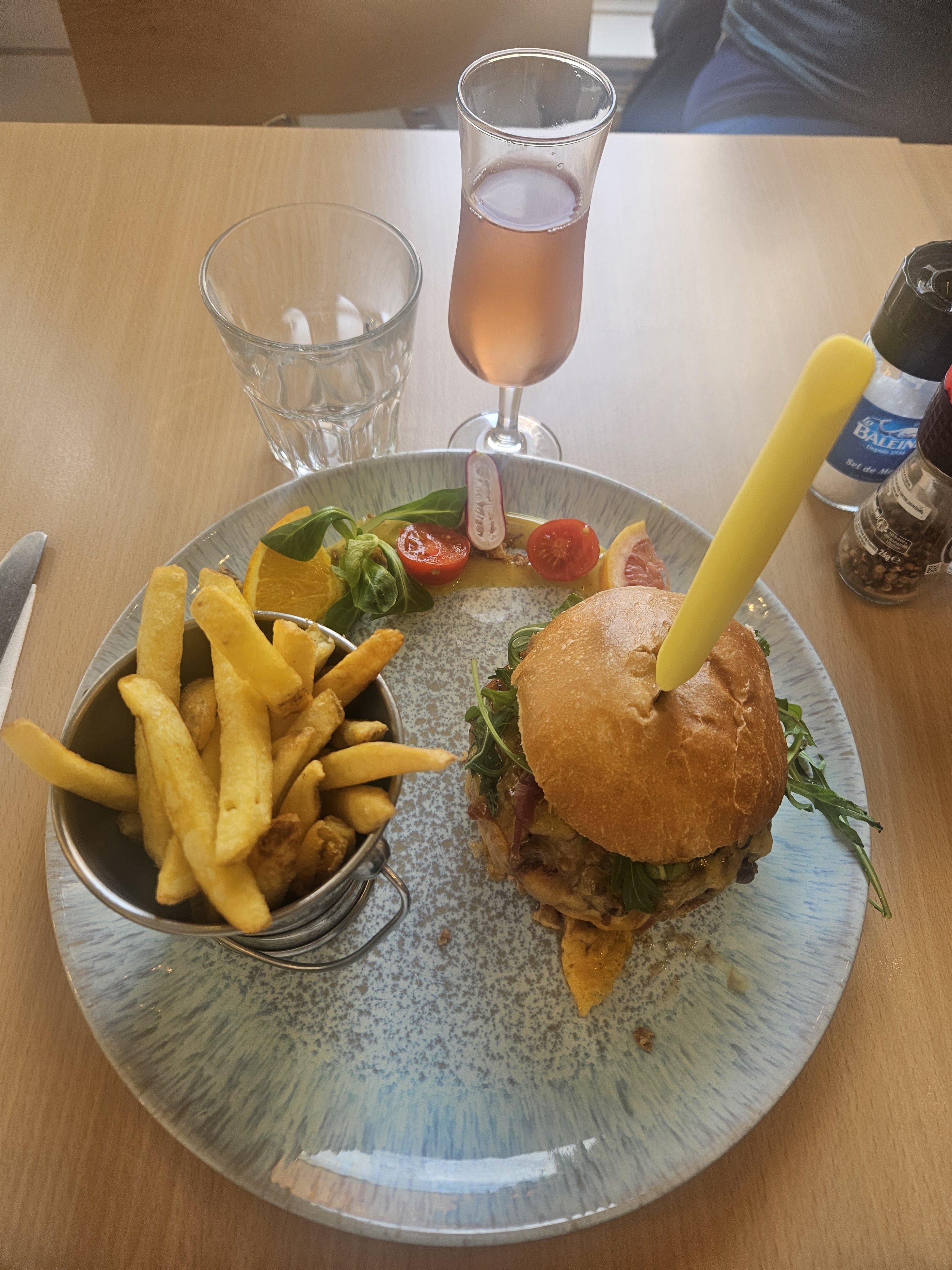 Salade polenta orange à tomber, moins fan du burger : bcp d’ingrédients qui ne se mariaient pas à mon goût ! Serveuses très sympathiques