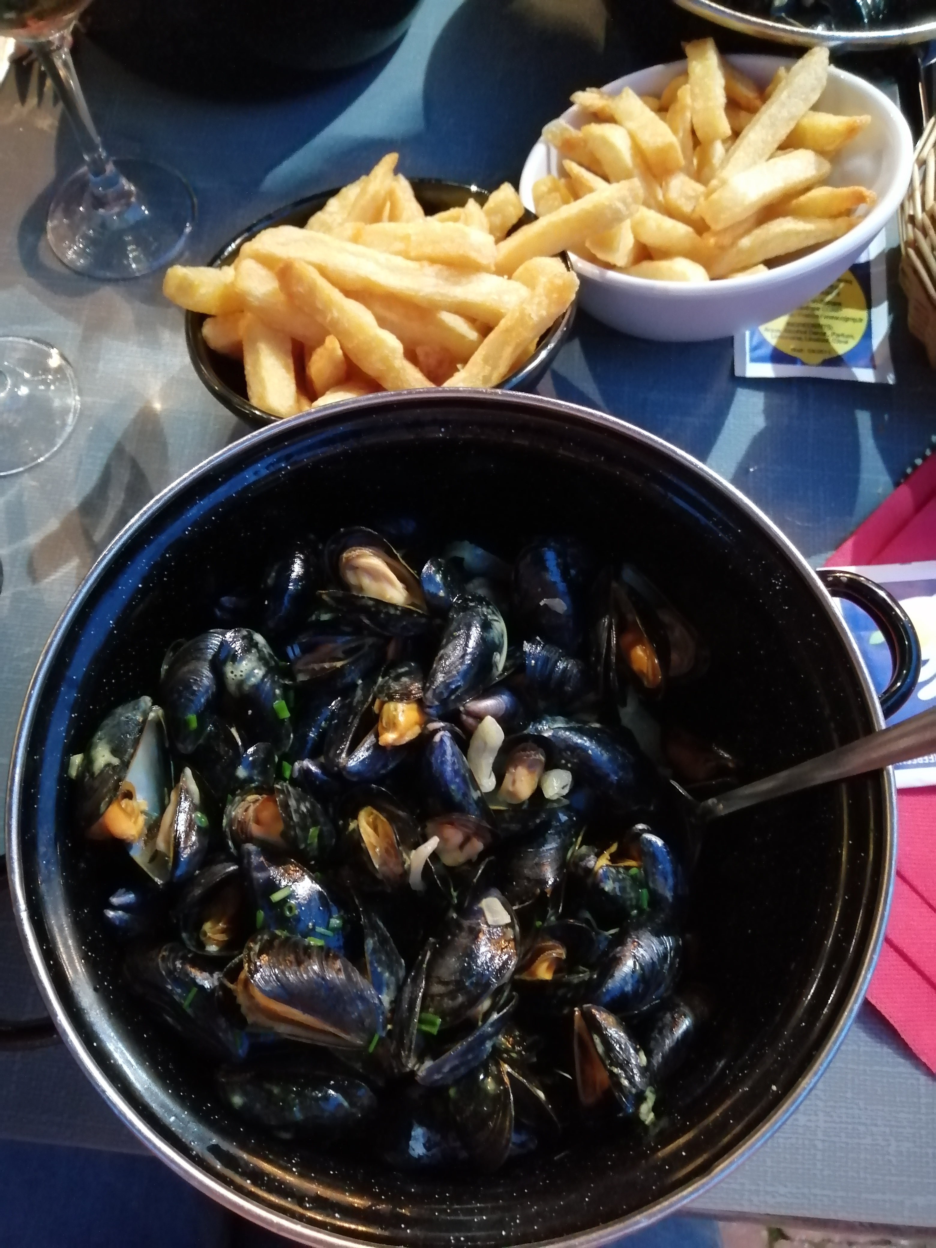 Les moules sont extras ainsi que le dessert. Les frites en revanche n’étaient pas terribles (défaut dû soit à l’huile utilisée ou la variété de pommes de terre)!
