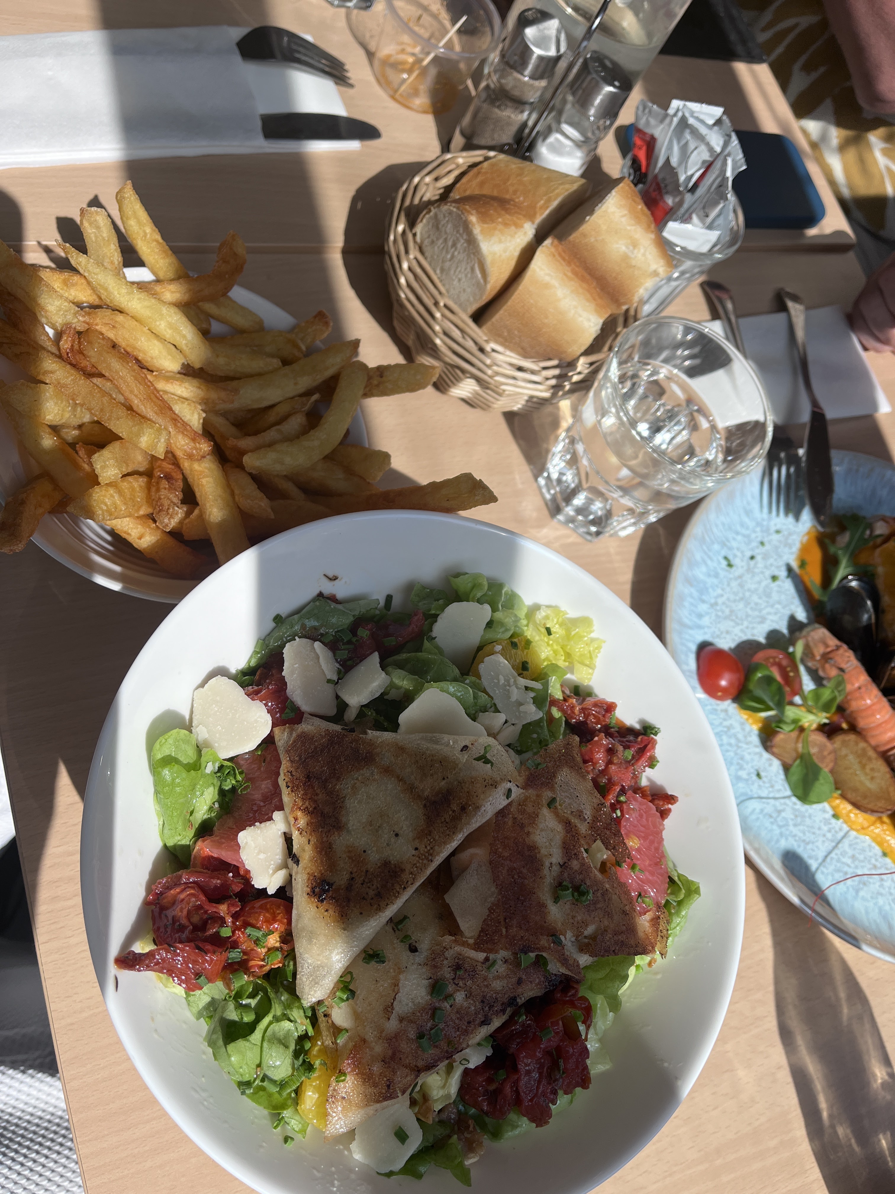 Repas pris ce midi, moules frites marinière et un dessert, tout était délicieux. Nous ne regrettons pas notre choix de s'être éloigné du bord de mer, moins de passage et donc moins de bruit. Je recommande+++ ce restaurant