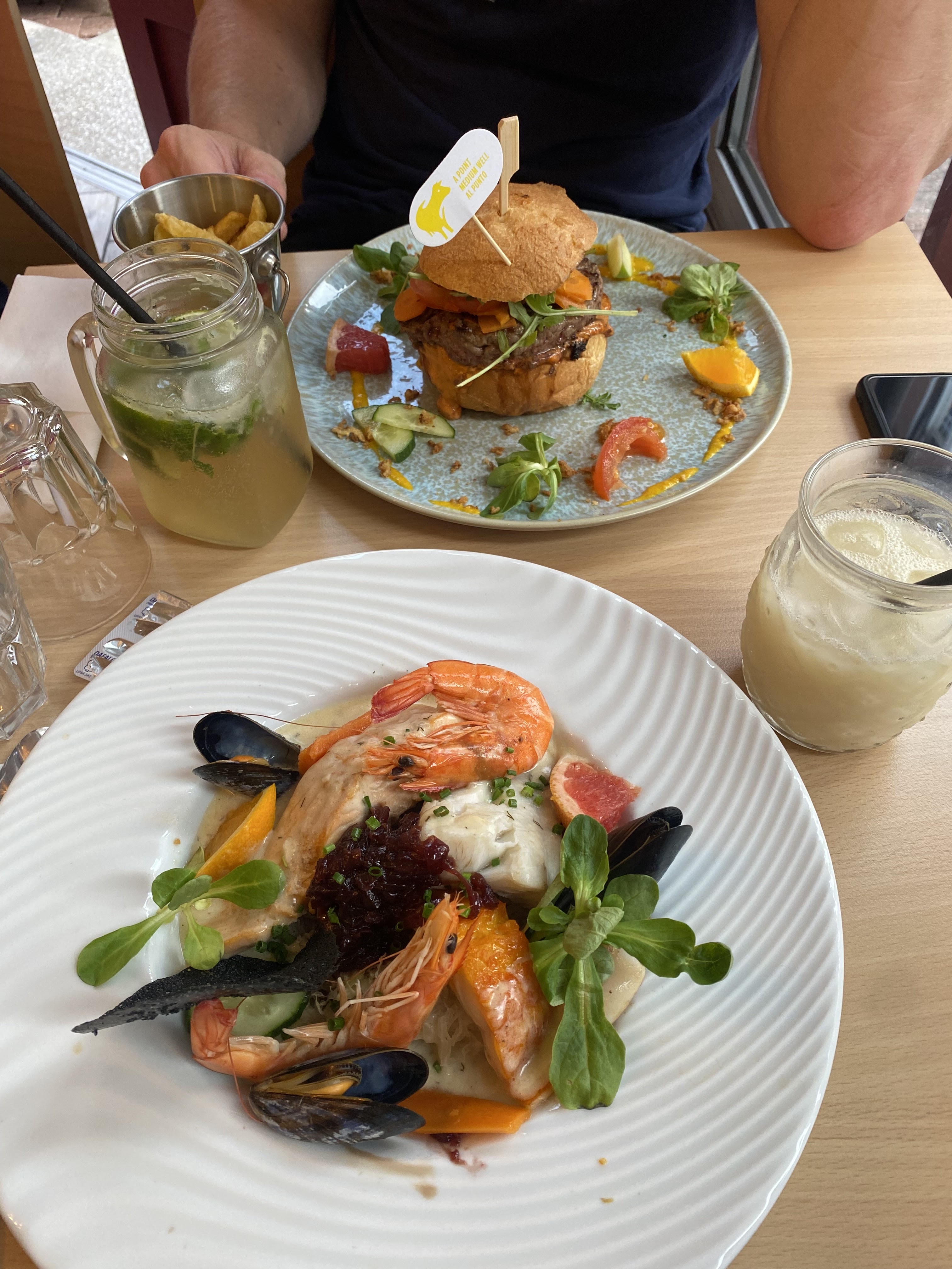 Accueil très professionnel, personnel très arrangeant sur les petites modifications dans la composition des plats. Hamburger et assiette de la mer très bon, produits de bonne qualité. Établissement très propre. Mérite sa très bonne place dans le classement TripAdvisor. J'y retourne mardi ou mercredi et je confirmerai (ou pas) mon excellente impression. Bravo à l'équipe.