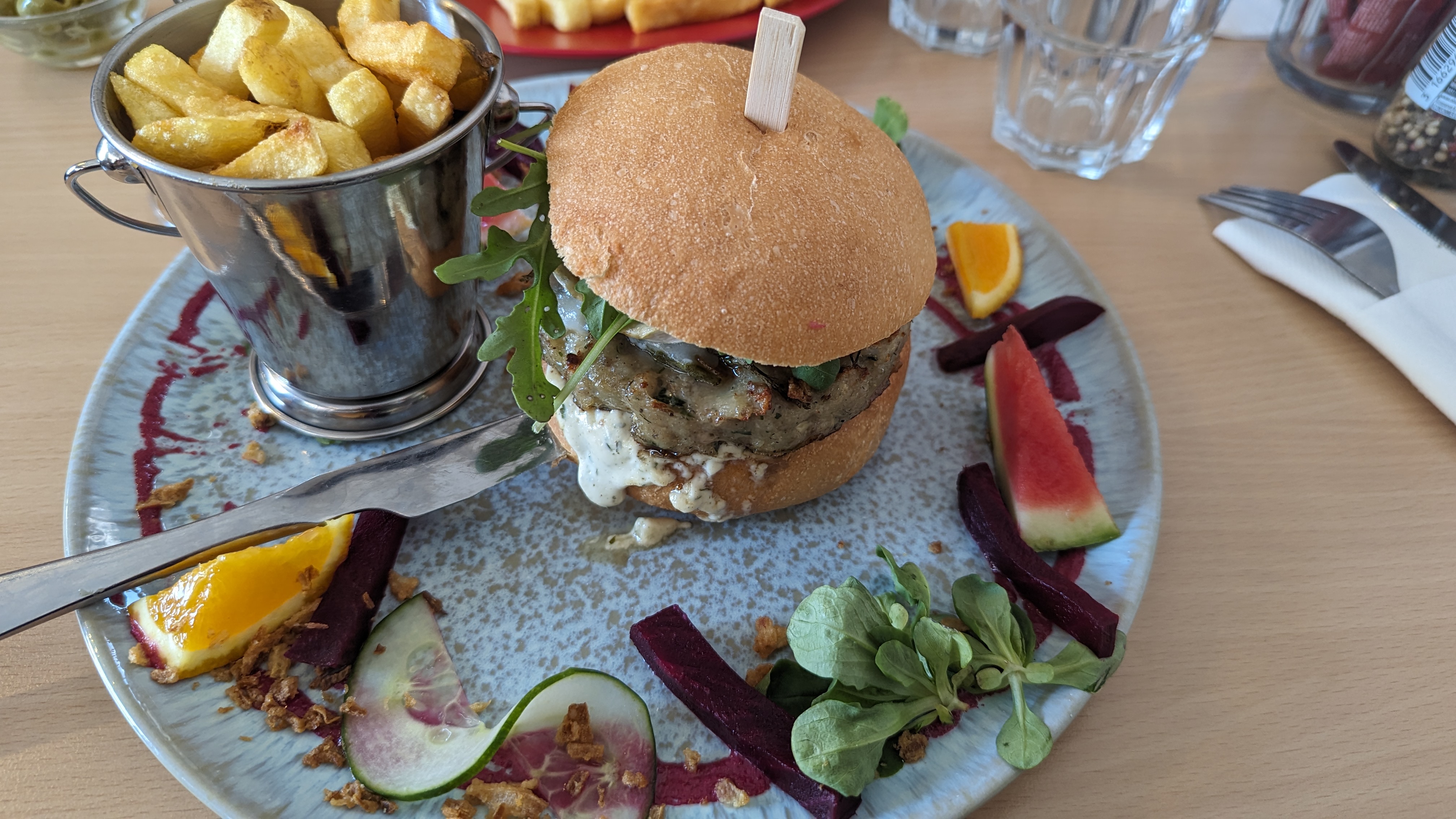 Très bon restaurant, le burger au cabillaud était au top 👌🏻👌🏻la carte donne vraiment envie Seul bémol, un accueil pas très chaleureux, qui heureusement s'est détendu plus tard.