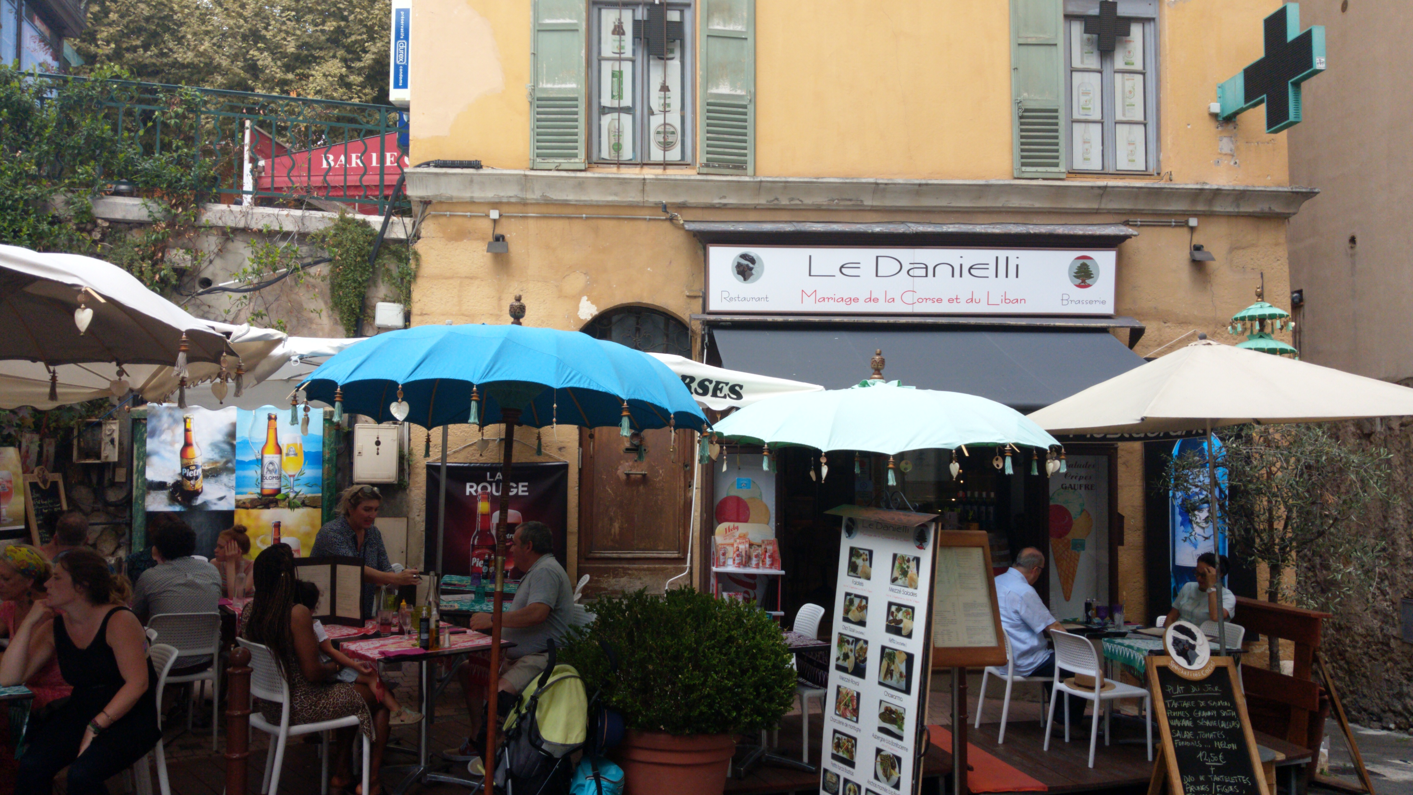 Je recommande un glacier restaurant Danielli C'est un établissement situé près de la place aux aires a Grasse, rue du touron, qui m'a plu car il propose des plats libanais, excellents, et des spécialités corses ( je ne sais pas, je n'ai commande que les libanais car végétariens). Bon accueil, joli cadre et surtout c'est frais et fait maison, ce qui est rare. Pas trop cher : j'ai payé 20€ pour plat boisson et dessert.