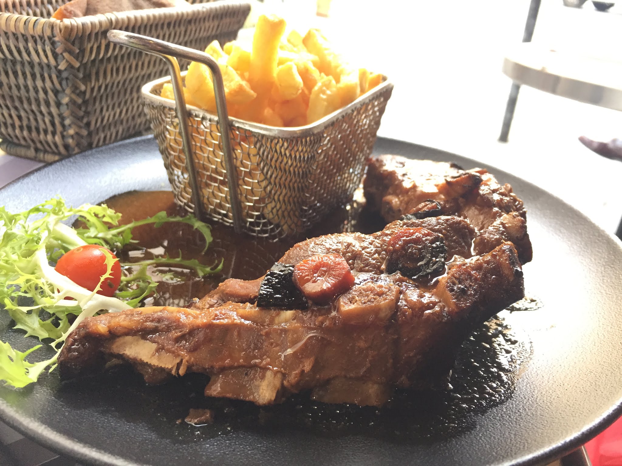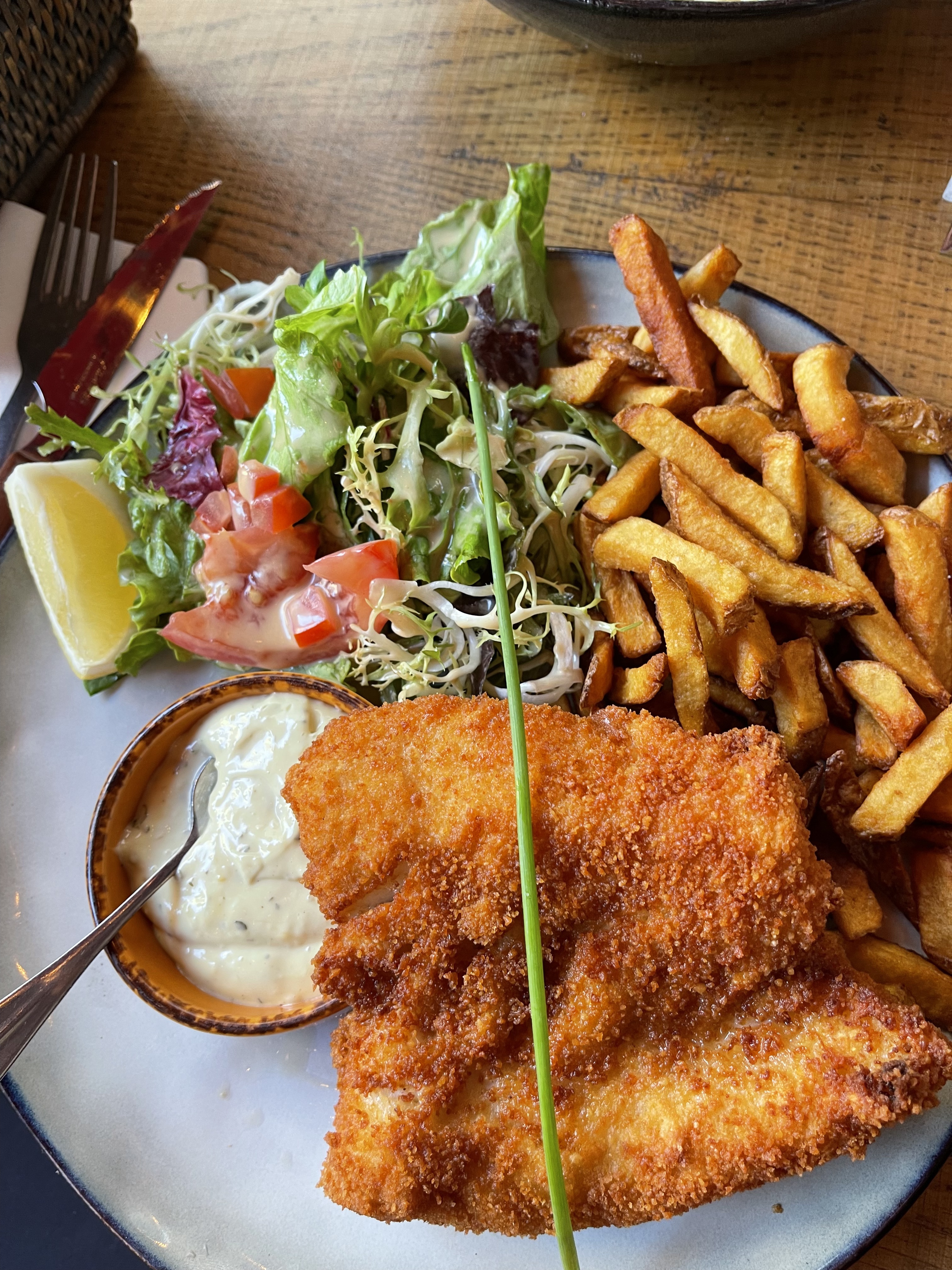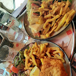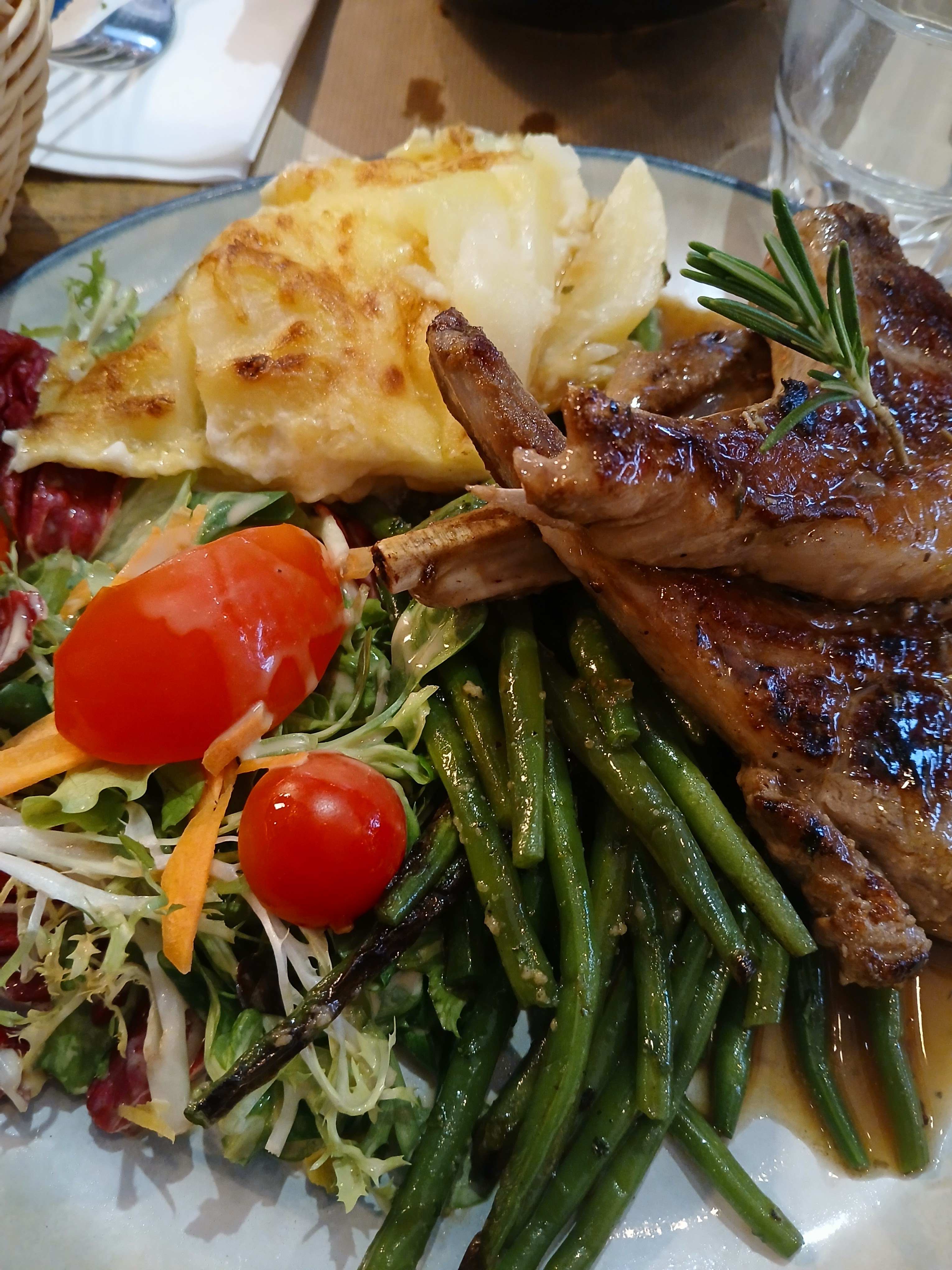 Bel endroit et nourriture délicieuse! J'ai eu le poulet, qui était énorme et il était accompagné de (beaucoup) de haricots verts, de frites et de salade. Le menu ne dit pas qu’il est accompagné de la salade, donc c’était en fait une belle surprise ! Très gros plat, donc très copieux ! Pas besoin d'entrée ou de dessert lors de la commande. Bon prix aussi !