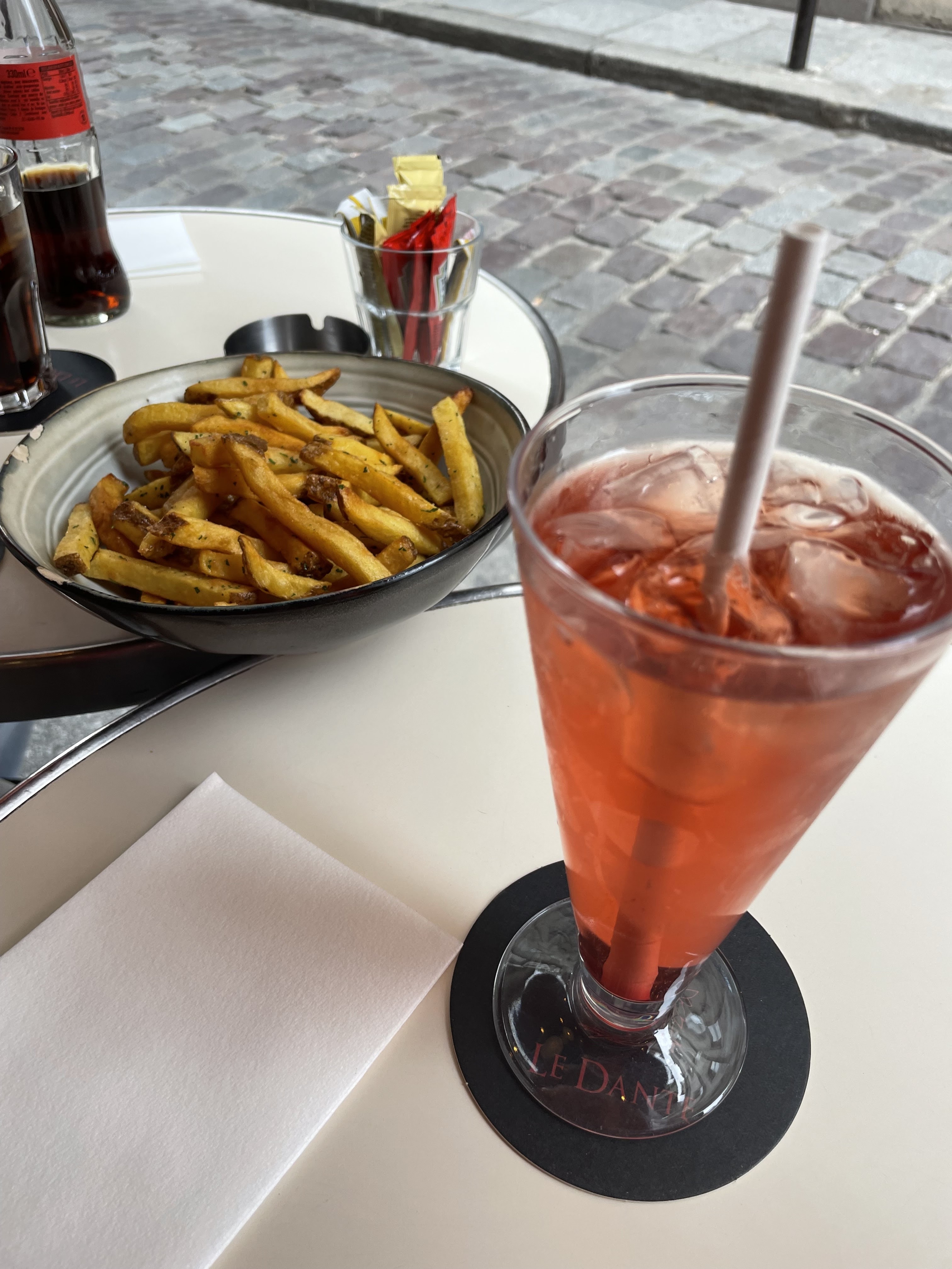 Idéal pour regarder les gens. Je n'y ai jamais mangé mais la nourriture avait l'air délicieuse. Les boissons que nous avons bu étaient bonnes. Le seul inconvénient était que l'attitude du serveur n'était pas ce qu'on pourrait appeler accueillant.