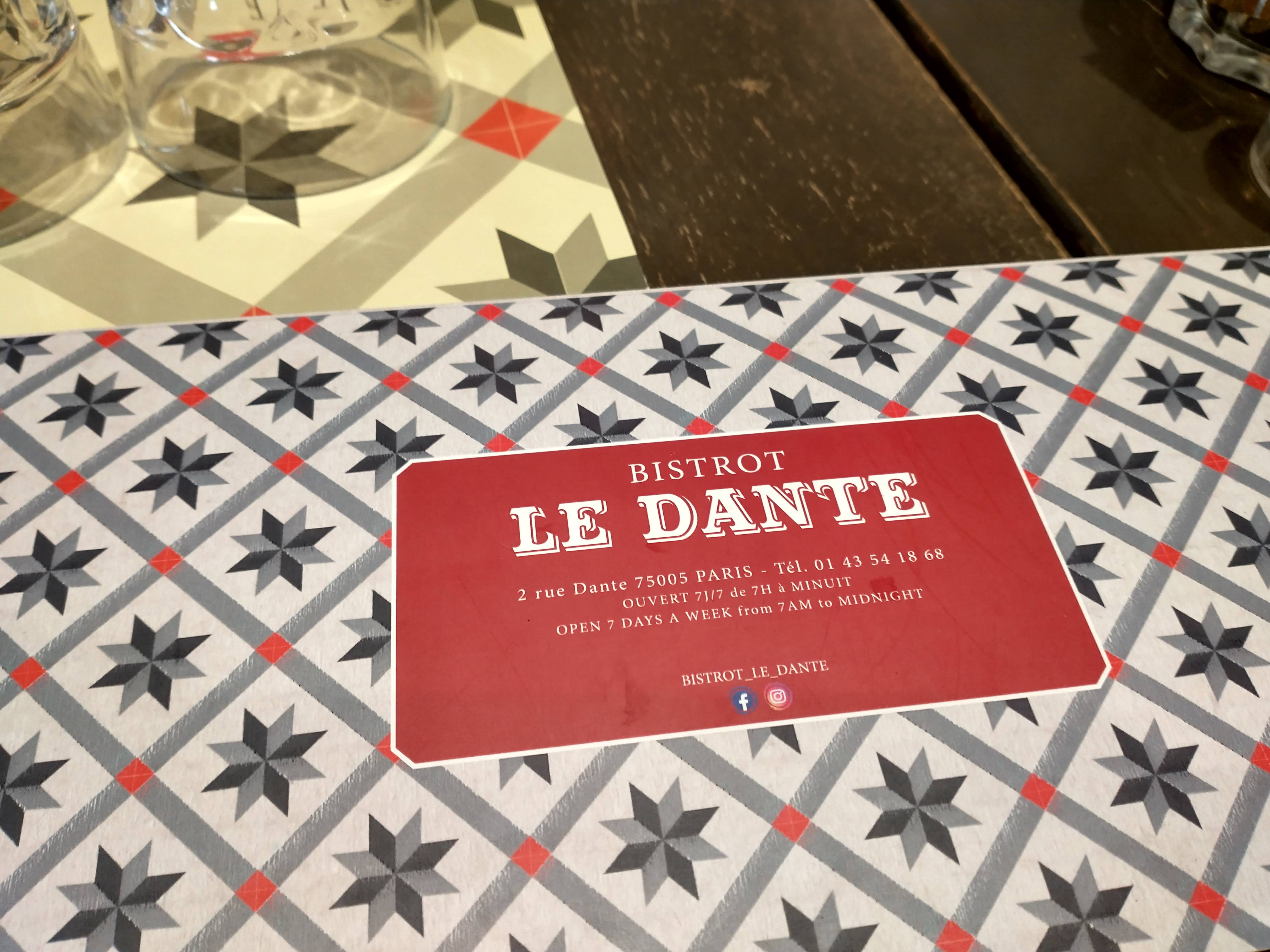 Bon service et cadre accueillant. Quel dommage que la cuisine ne suive pas! La qualité des plats est peut-être meilleure en temps normal mais elle a été très décevante lors de mon unique visite. Le menu était pourtant simple et prometteur: melon jambon de pays, onglet frites maison salade, tarte aux mirabelles. Le melon était bon mais le jambon sec. L'onglet, malgré une bonne cuisson, était de qualité passable avec une sauce au poivre insipide et la salad quasiment inexistante. Quant aux frites maisons, elles avaient l'air d'avoir été réchauffées et formaient in tas mou et beige sur l'assiette. Enfin, la tarte aux mirabelles n'avait pas de goût. Le Café Dante a tant de potentiel. Pourquoi ne pas faire un petit effort et se concentrer sur ce qui compte: la fraicheur et la qualité de la cuisine plutôt que look des plats? J'étais d'autant plus déçue que je ne rentre pas souvent en France et invite encore moins souvent des amis étrangers à manger à Paris. Quand on mange de meilleurs plats français à l'étranger, il y a quelque chose qui cloche. The service and setting are welcoming. What a pity the food isn’t equally satisfying! The quality of the dishes might be better usually but it was very disappointing on my unique visit. The menu seemed simple and promising: cantaloupe with prosciutto, steak with salad and home made French fries, mirabelle plum tart for dessert. The cantaloupe was good, however, the prosciutto was dry. The steak, despite being cooked exactly as requested was of mediocre quality with an insipid pepper sauce and the salad consisted of a few tiny leaves, more like a decoration than an actual salad. As for the fries, they seemed to have been reheated and formed a limp beige little mound on my plate. Finally, the plum tart had no taste. Café Dante has so much potential. Why not make a small effort and focus on what matters most: the freshness and quality of the food rather than the look of the dishes? My disappointment was great as I don’t often go back to France or invite friends from abroad to eat out in Paris. When French food is better abroad thant in France, something’s gone wrong.
