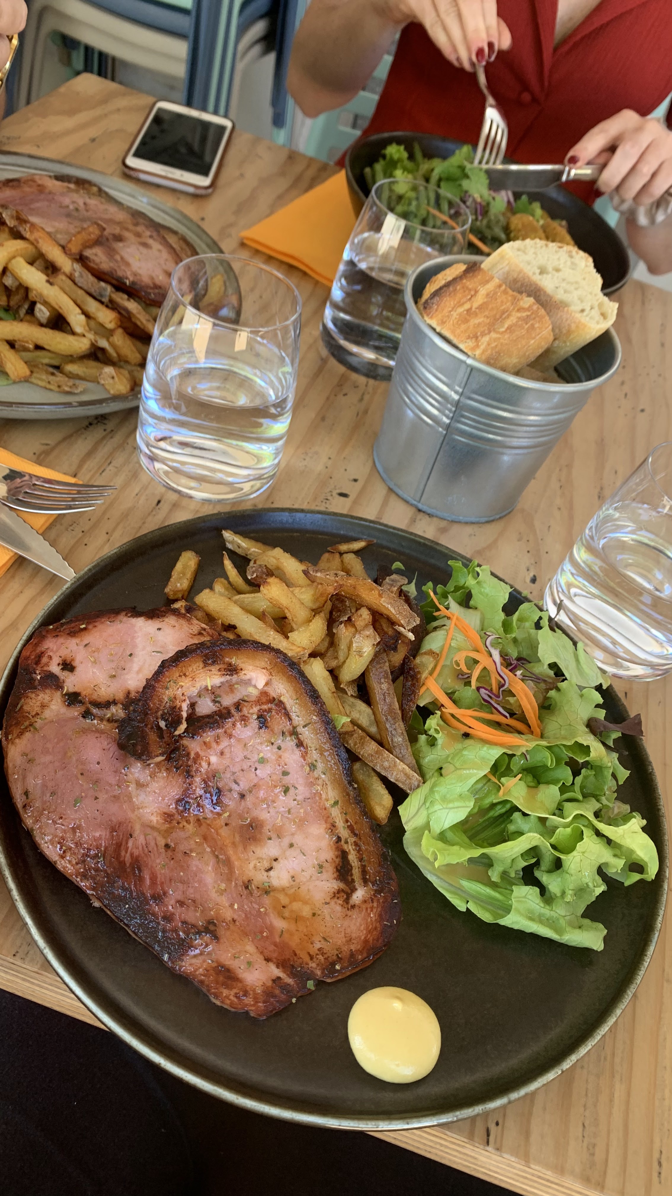 Beaucoup de gras dans une viande qui n'était pas vraiment saignante, mais hormis ce détails ce restaurant est très bon ! Les frites sont délicieuses, de même que les desserts, et le personnel, bien que secoué par la foule de clients, sait trouver le temps de vérifier que tout se passe bien, et c'est appréciable !