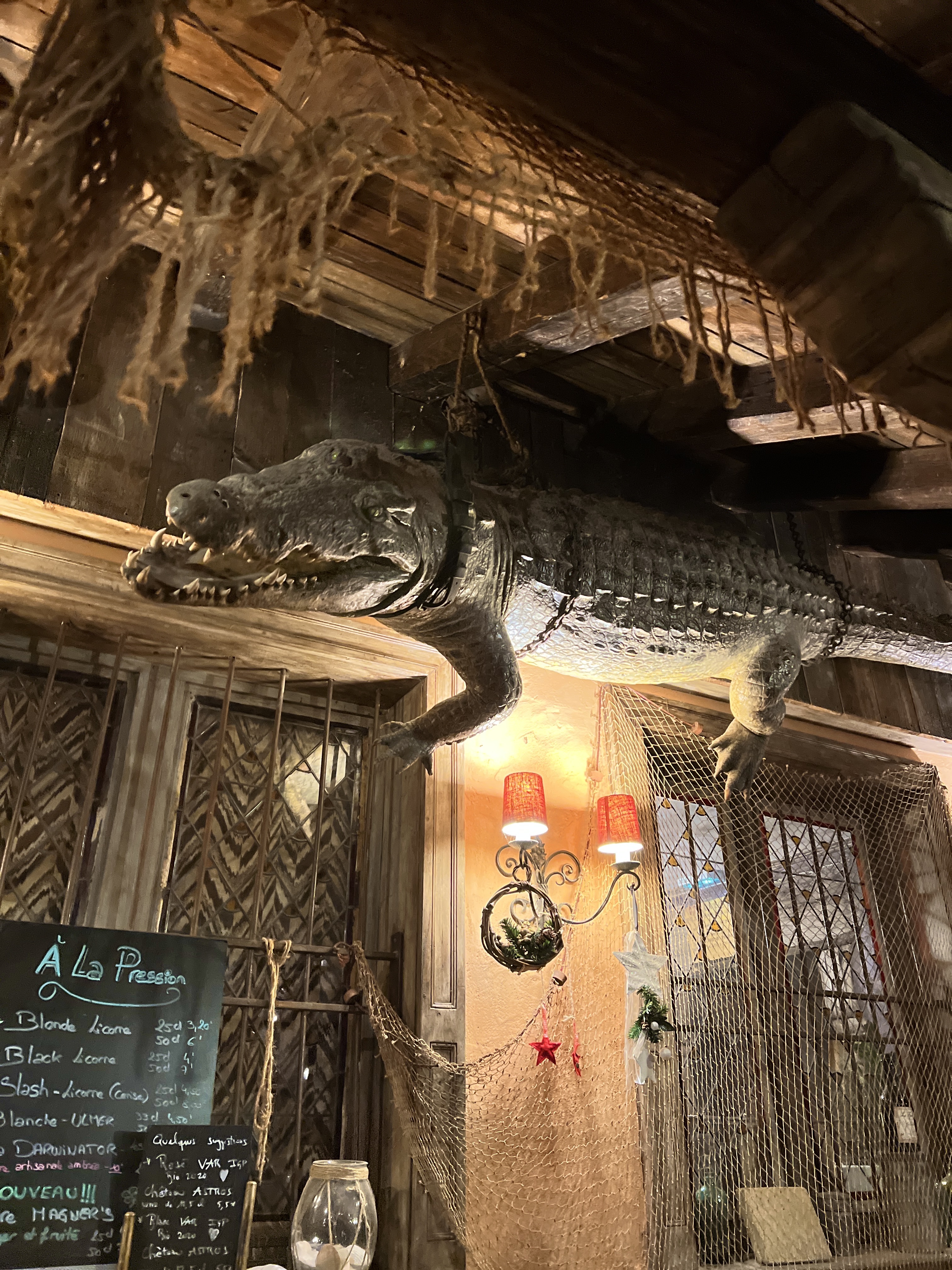 Avec une copine on recherchait un bar un peu par hasard le soir et en voyant les plus de 535 avis, on a décidé d'y faire un tour. Et la .... La surprise la plus total (en bien ;p) Une décoration a l'ancienne authentique, mais vraiment de OUFFF (surtout le crocodile de plus de 3m accroché au mur, une dinguerie mdr). Le serveur qui sait occupé de nous, super gentil et attentionné. Vraiment TOP sincèrement. Et leur tarte flambée sucrée banane nutella la meilleur que j'ai mangé depuis bien longtemps. BREF ils méritent sincèrement tout leur AVIS POSITIFS