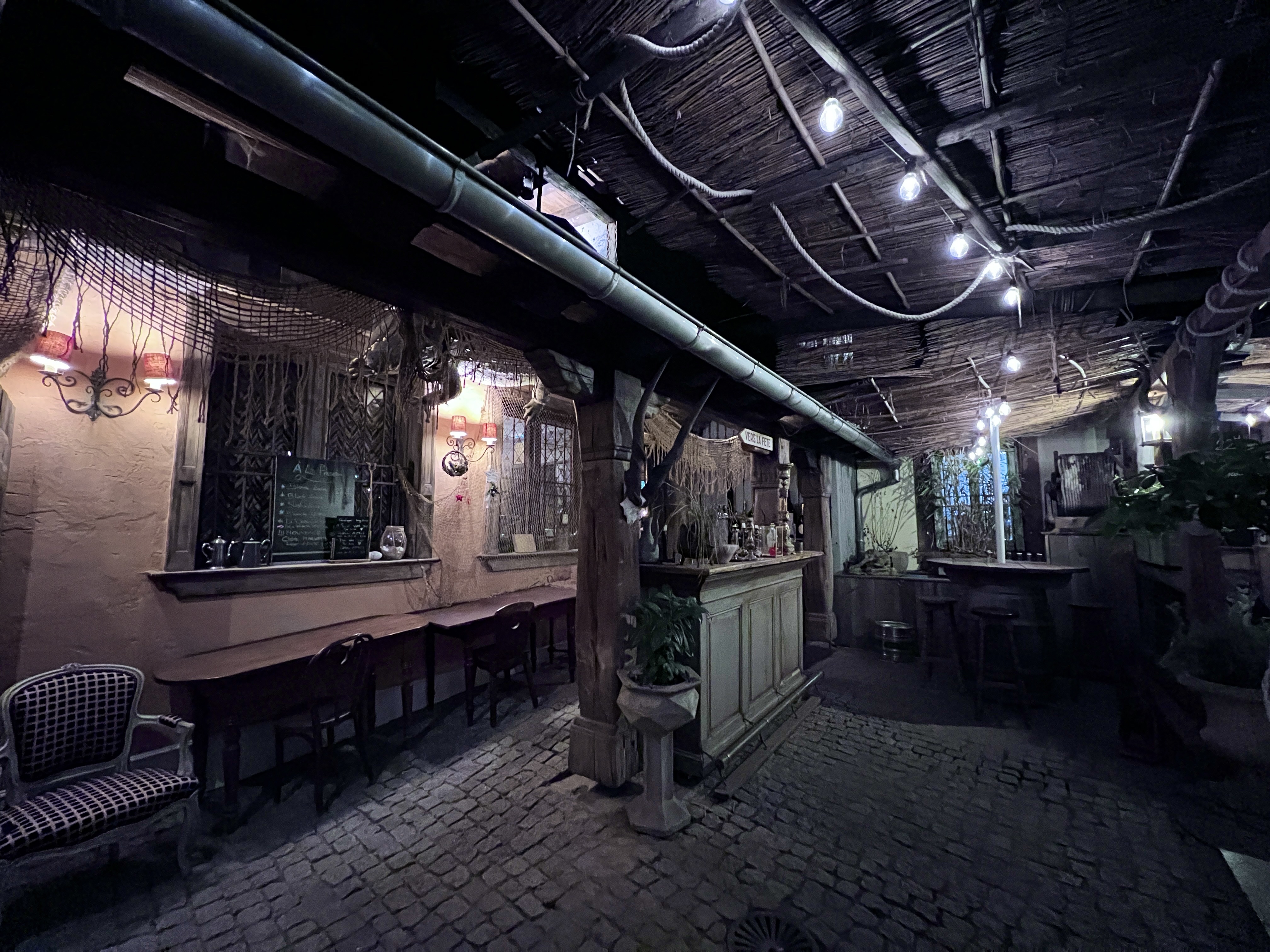 Un joyau extraordinaire au dernier endroit auquel on l'attend (Chatenwhere ?), riche d'œuvres d'art exquises, d'animaux empaillés du Nil au Rhin et d'un assortiment de livres qui rivalisent avec leur collection de liqueurs. Le magnifique personnel est bien plus charmant que les poissons vivants (ils appartiennent tous à la même famille, donc le caractère français est bien préservé). Sans doute la vie nocturne alsacienne secrète mais totalement discrète, atmosphérique à l'extrême. Je reviendrais en ville uniquement pour y revenir !