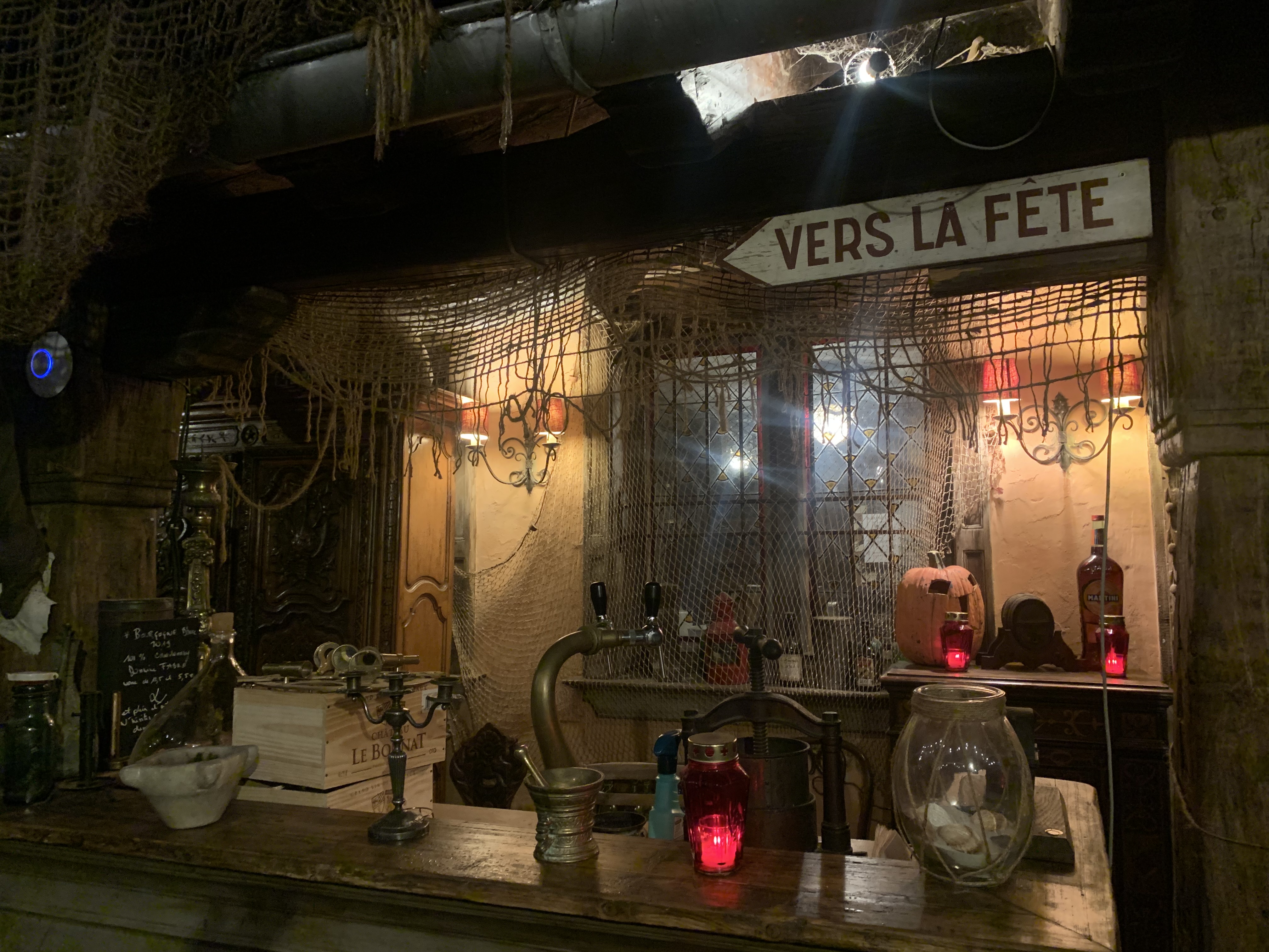 Dépaysement total pour halloween. Squelettes, Cerceuils, taxidermies, toiles d'araignées, tout y était pour une ambiance festive et sympathique