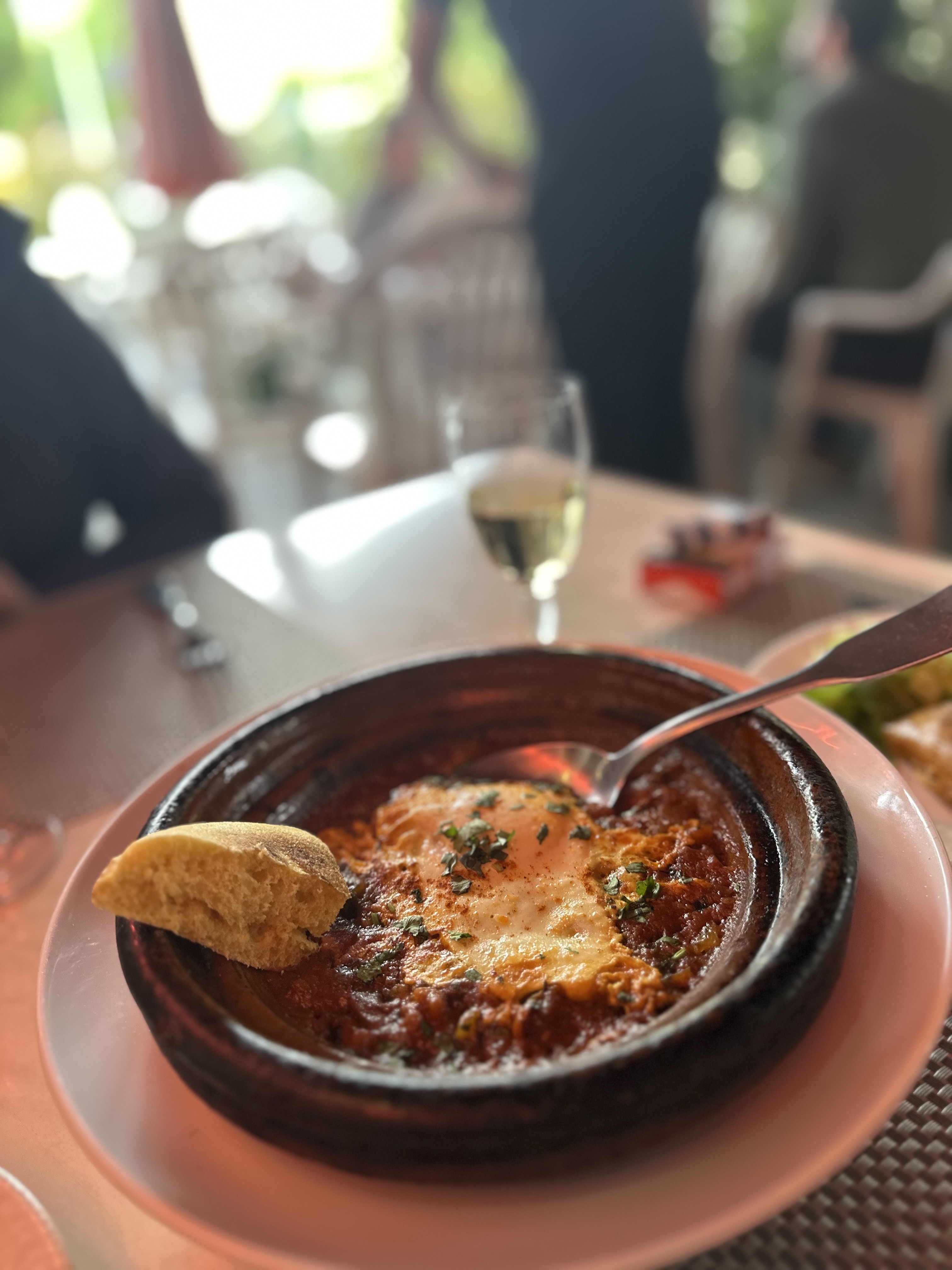 Service top ,brick à l œuf un peu simple Tajine excellent !! Terrasse sympa dommage que ce sont des chaises plastique ....
