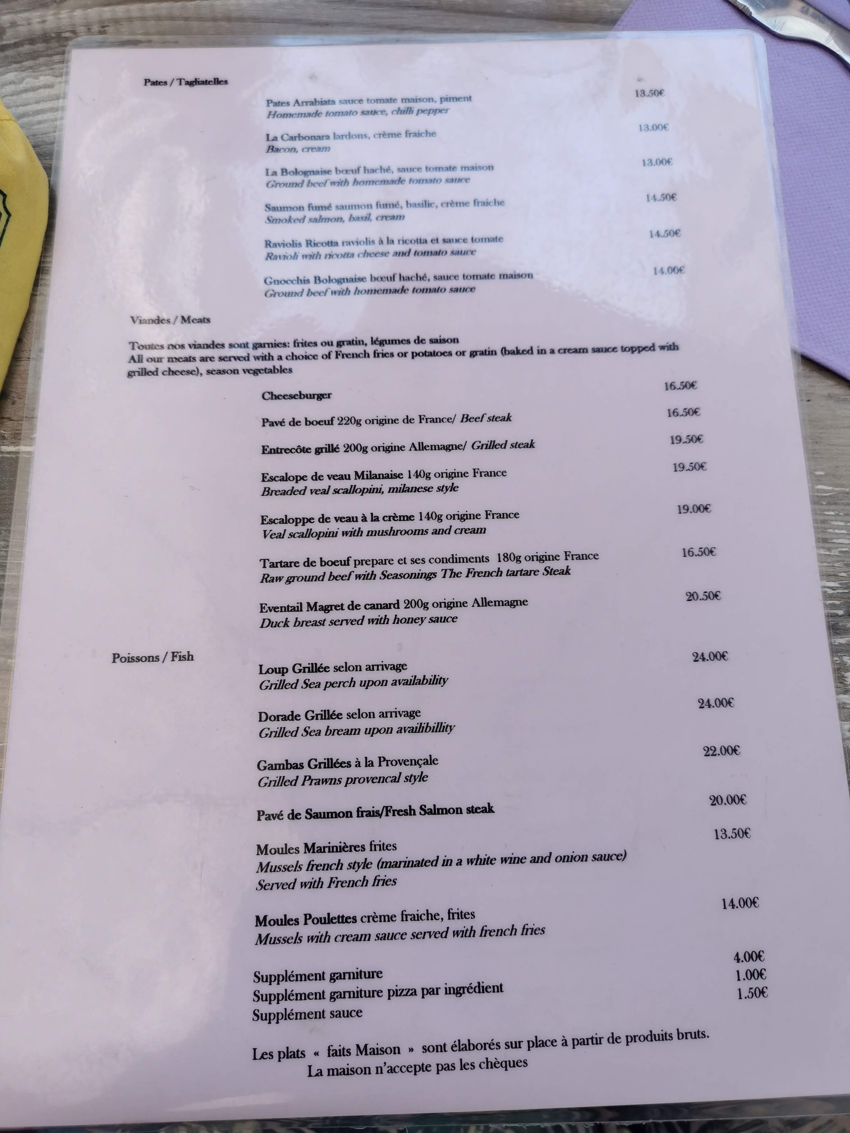 Patron bien sympathique, Burger bon et copieux , plats sans prétention mais très correct, note raisonnable pour Cannes
