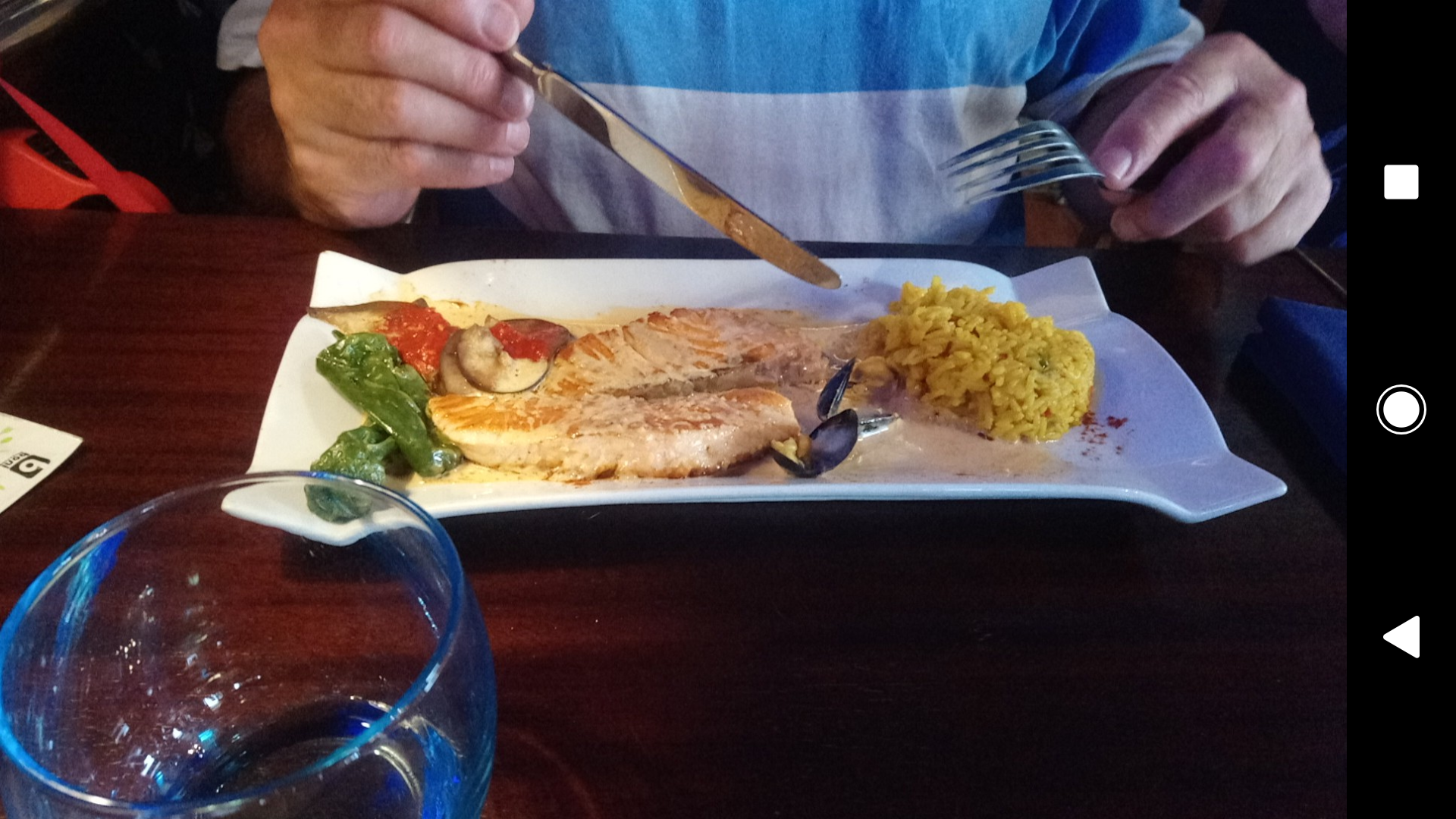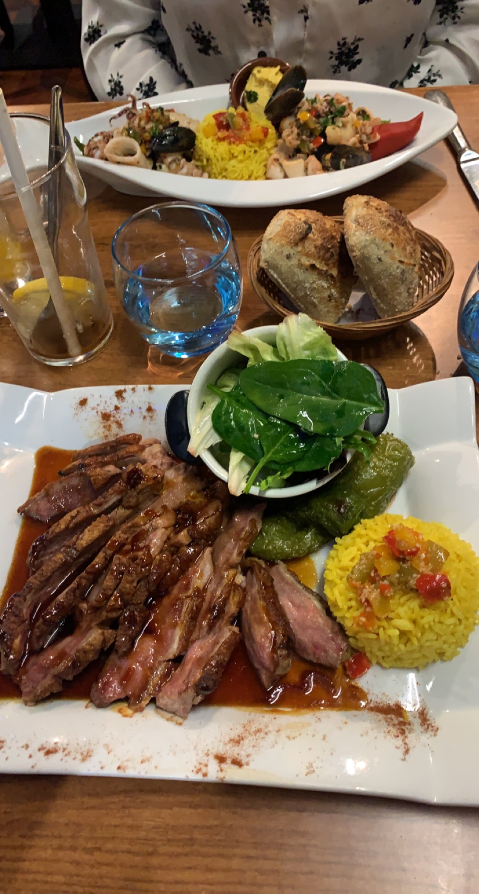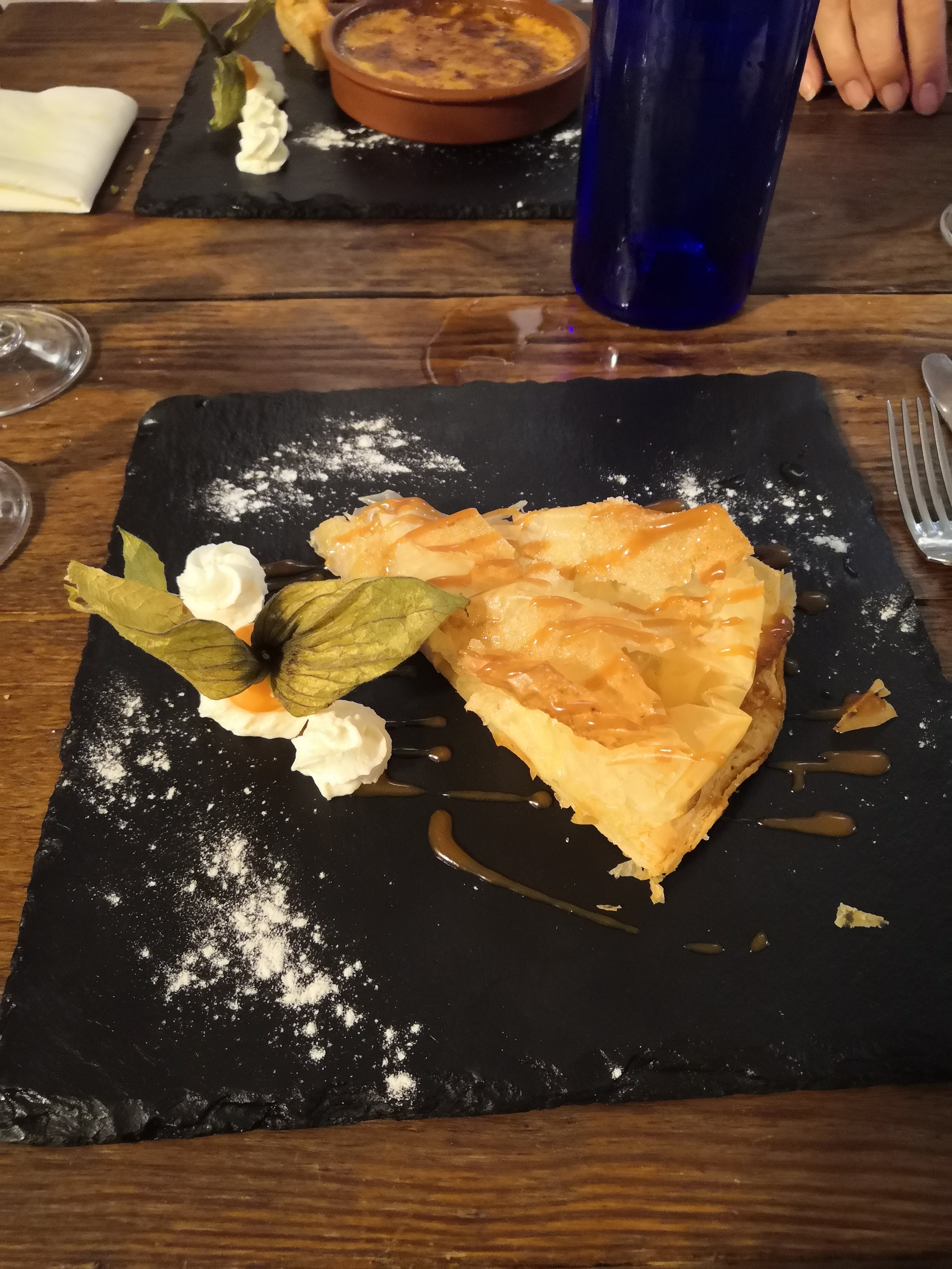 Menu plat + dessert (19.50) Plat : Paella au chipirons et chorizo Plat : Saumon braisé au Jurançon Dessert : Crème brûlée Dessert : Tourtieres pommes, caramel beurre salé C'était bon, et je la paella était bien fait ! Il faisait juste froid, et la table était petite à mon goût ^^ Insta : minhfitcook