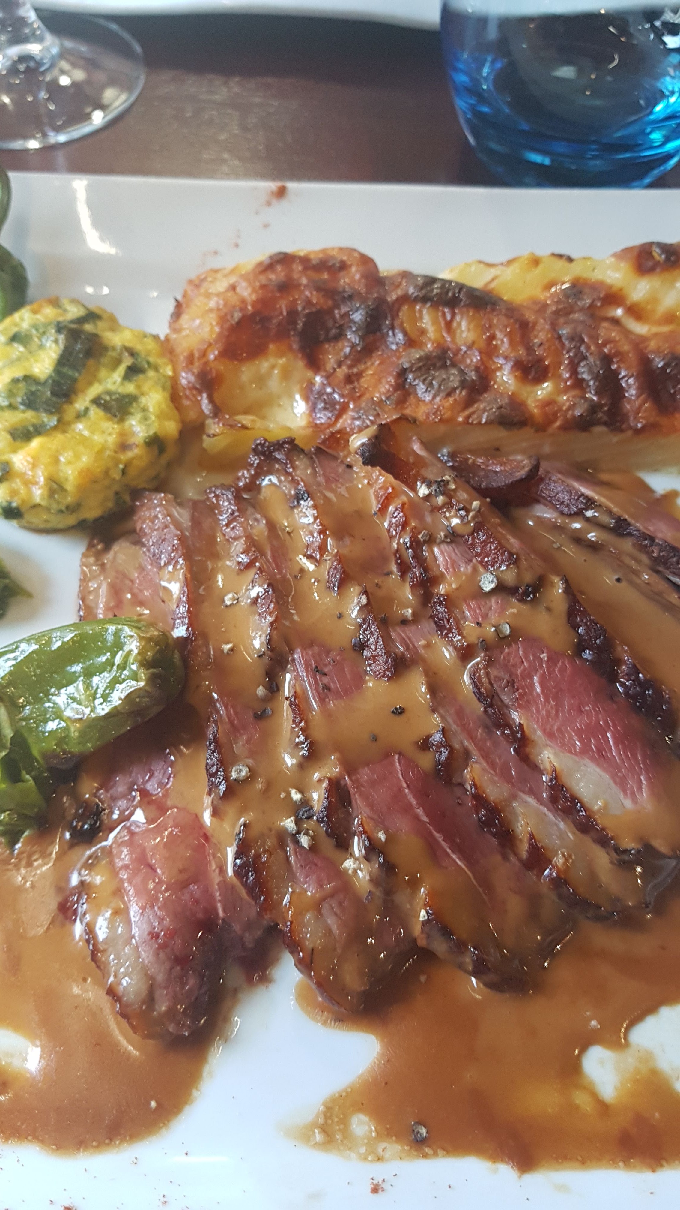 Très bon restaurant, nous y sommes déjà allé à 2 reprises. Au premier passage : Foie gras en entrée, excellent vraiment Saint Jacques au beurre de chorizo pour le plat et magret de canard pour mon compagnon, tres bonnes quantités, une cuisine qui a du goût Au top