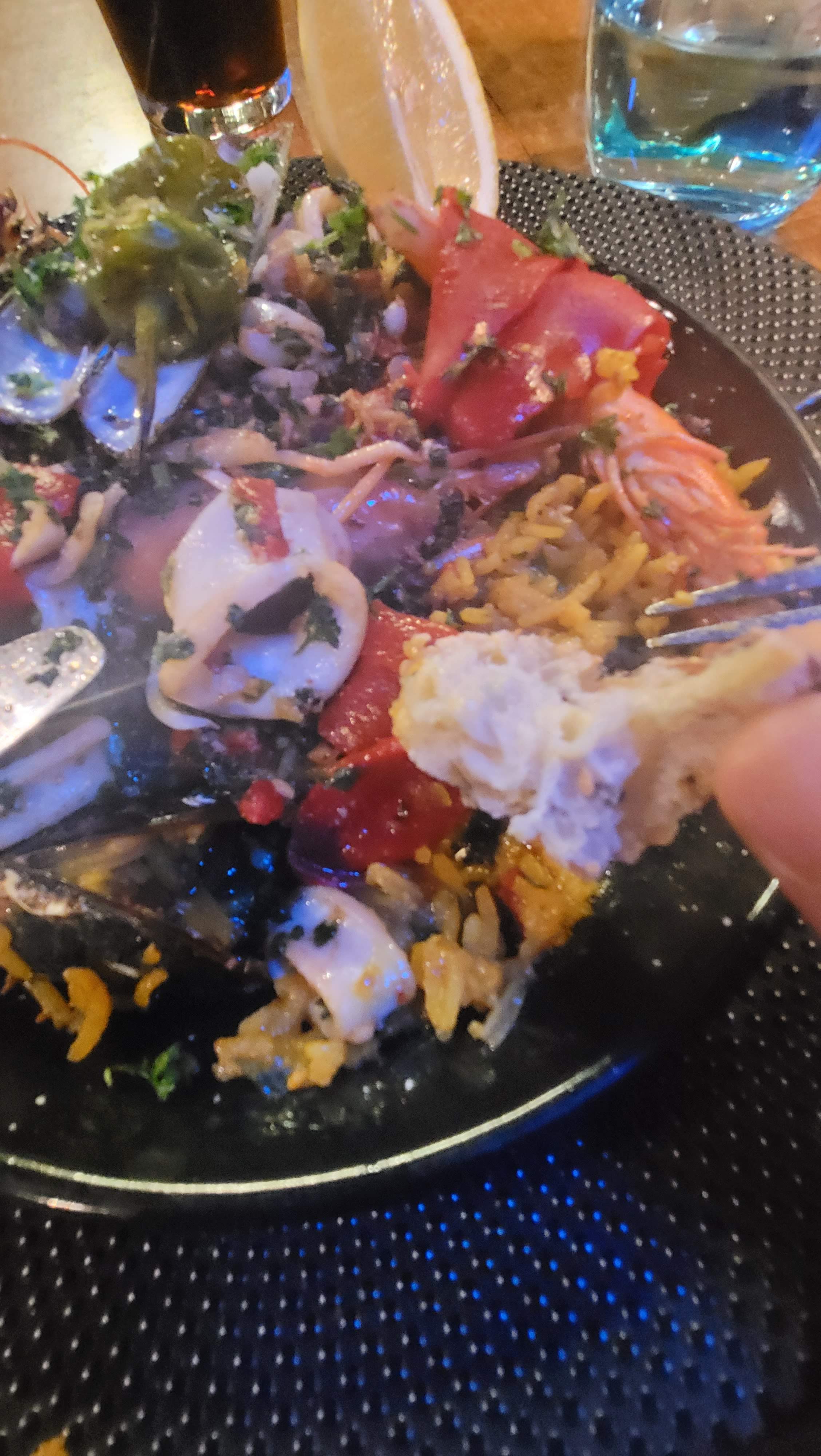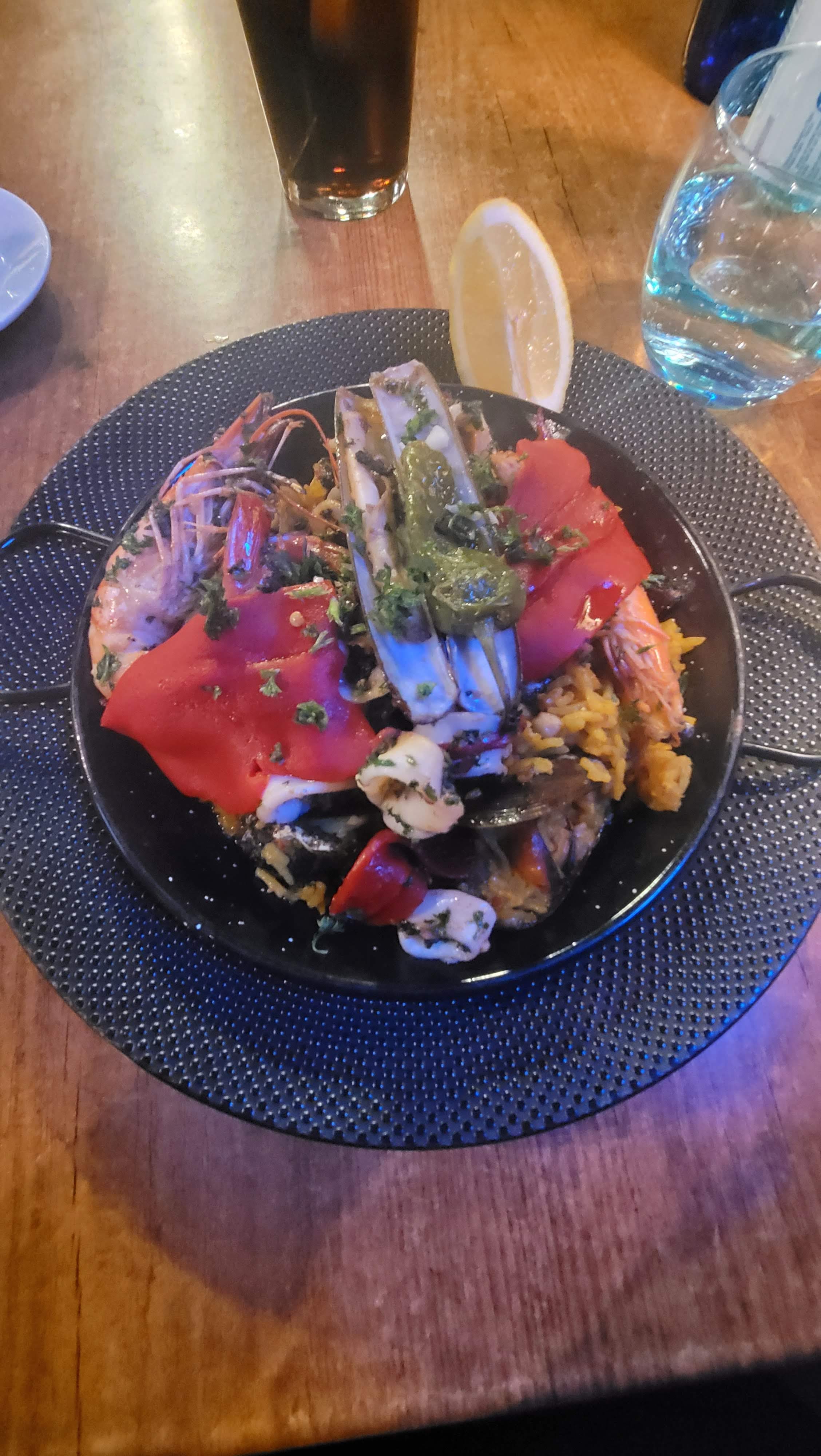 Paella aux chipirons et gambas délicieuse et très bon café gourmand. Rare de nos jours. Bon rapport qualité prix. Nous reviendrons avec plaisir.