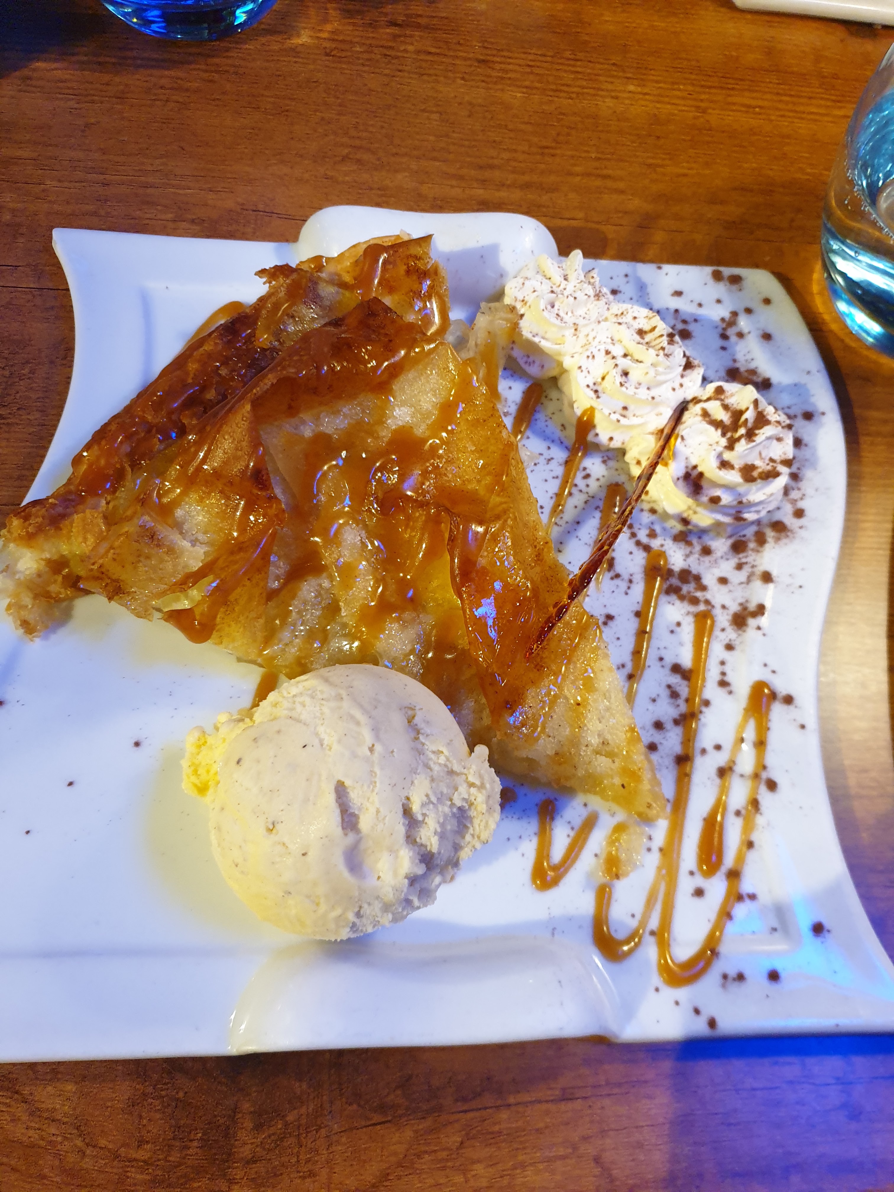 J'ai prit le menu avec les nems de canard confits en entrée, super bon ! Le croustillant a la brandade de morue qui était bon aussi, et le dessert la tourtière au pomme avec du caramel au beurre salé qui était vraiment excellent ! On a été un peu déçu de ne pas pouvoir goûter le saumon braisé
