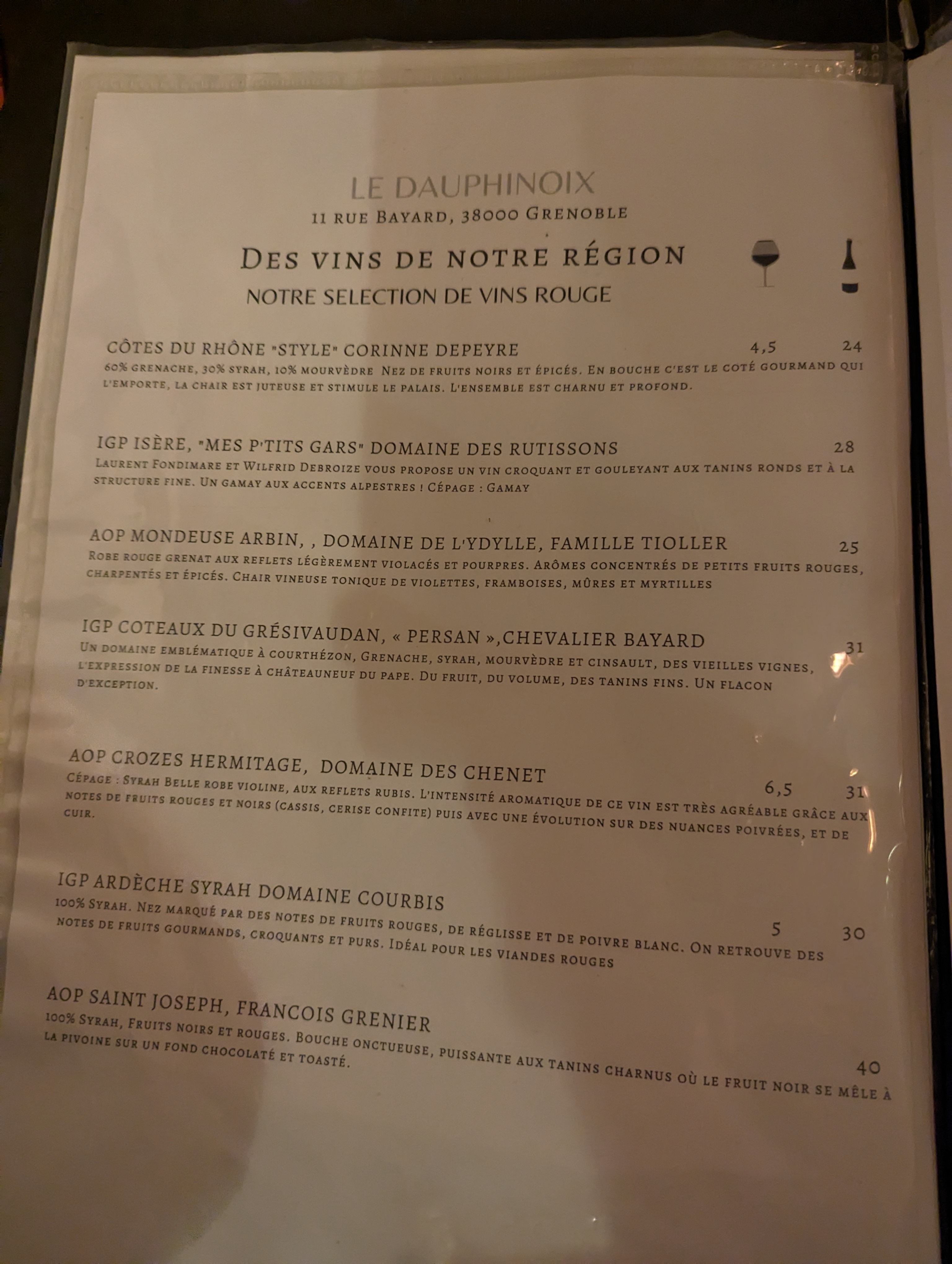 Petite sortie du soir sur Grenoble on décide de se laisser tenter par le dauphinoix. Très bon choix entrée et plat excellent tout comme l'accueil et le service de Valentin. Nous reviendrons 😊