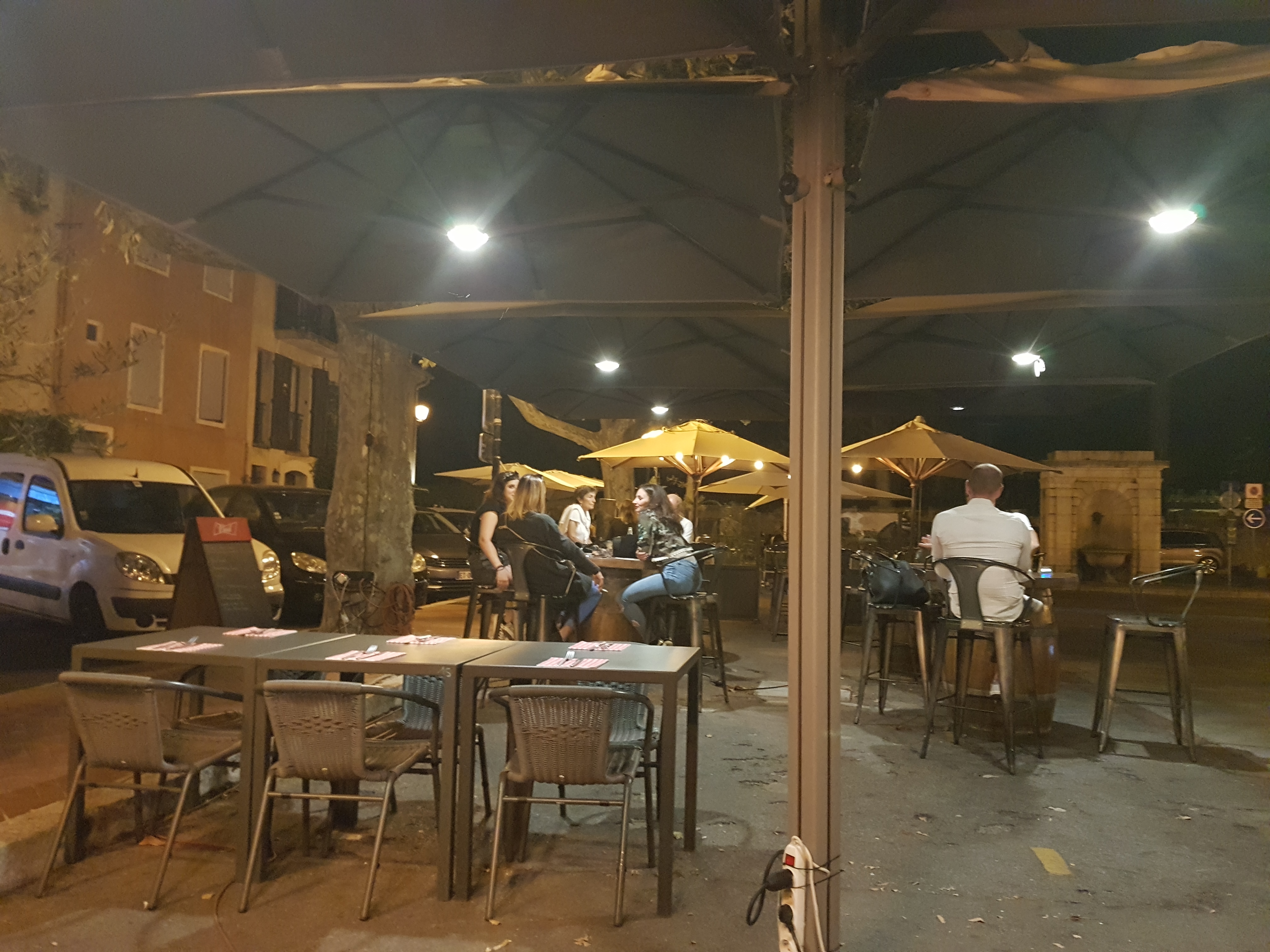 Nous sommes tombés sur ce bar en explorant Mouans-Sartoux le soir. -situé sur une belle place -Ici c'est déjà ouvert pendant que les restaurants se préparent encore -Boissons à apporter par exemple la délicieuse bière pression 'Fada Blanche' -Assis à l'ombre -Personnel sympathique -Bonne communication en anglais