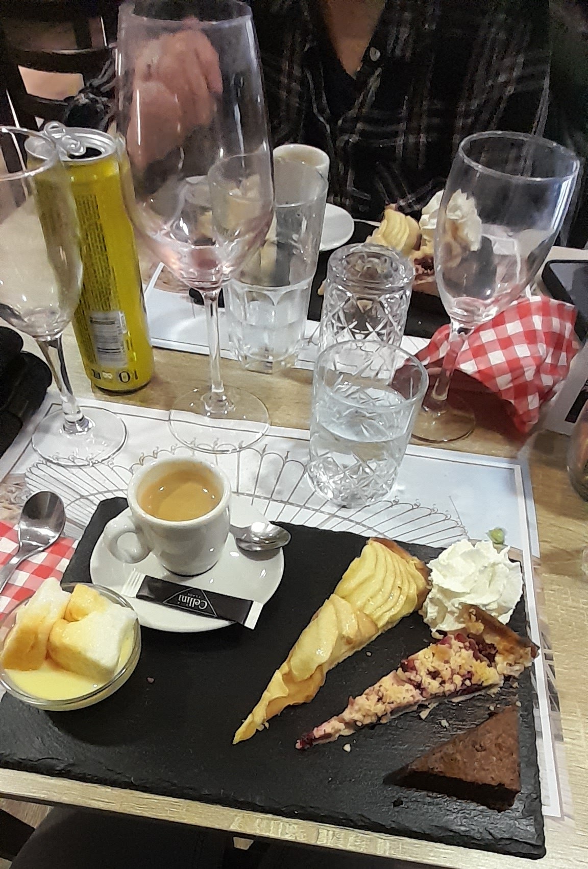 Bravo les saveurs dans les plats sont incroyables, café gourmand avec plus de 3 parts de gâteau et un café de la taille que vous souhaitez, serveur très aimable seul pour le service très bonne ambiance je recommande fortement ! N'hésitez pas