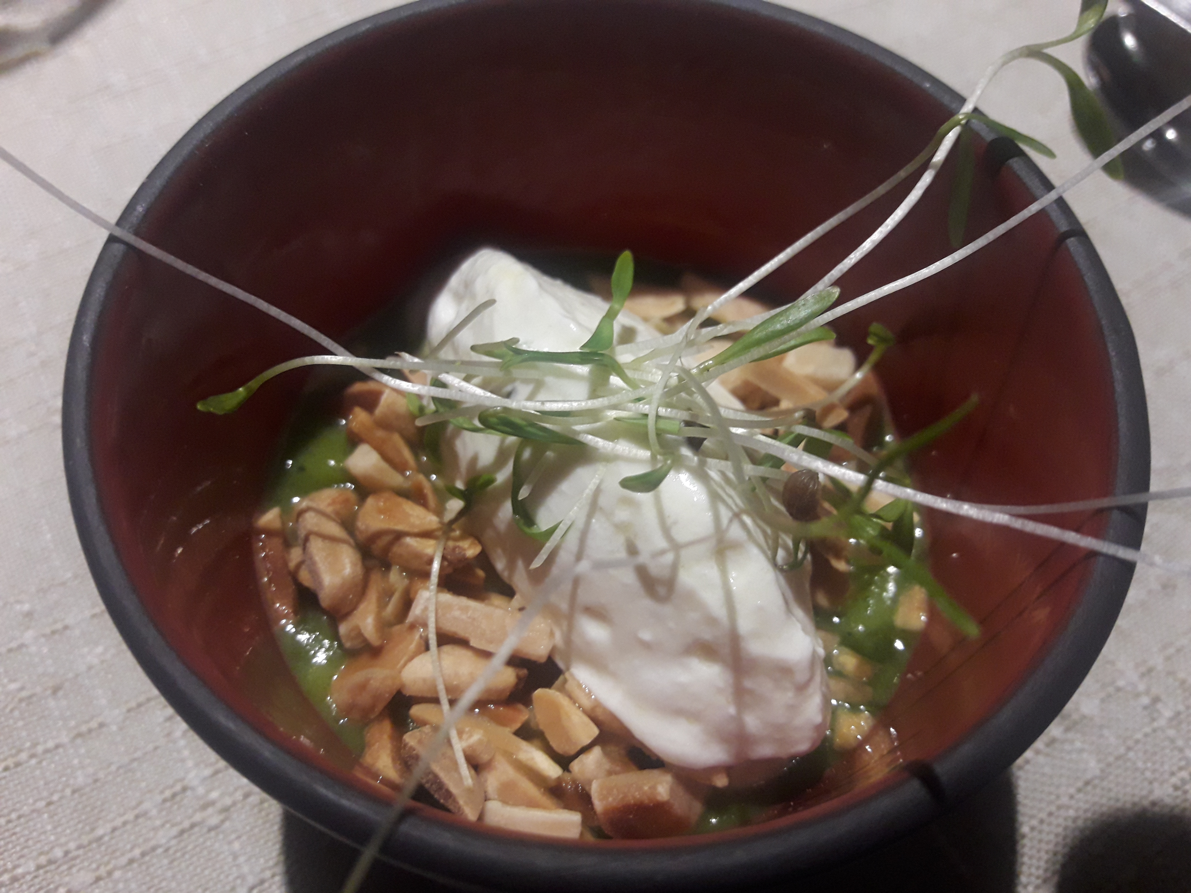 Menu plaisir bien équilibré en quantité (un troisième fromage aurait été un plus) produits de qualité et goutu, bon conseil pour le vin maîtrise son sujet, merci au chef pour ce régal, un peu surpris avant de comprendre l'humour de Virginie la maîtresse de maison 😀, la crème Chantilly des hauts de France.